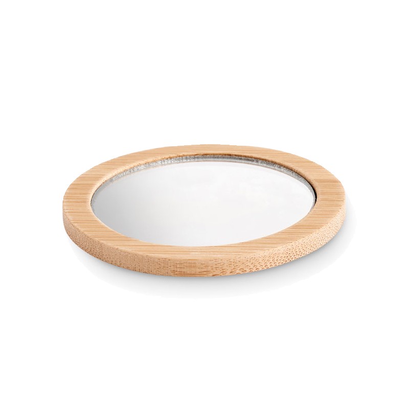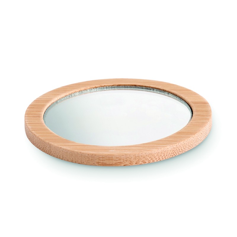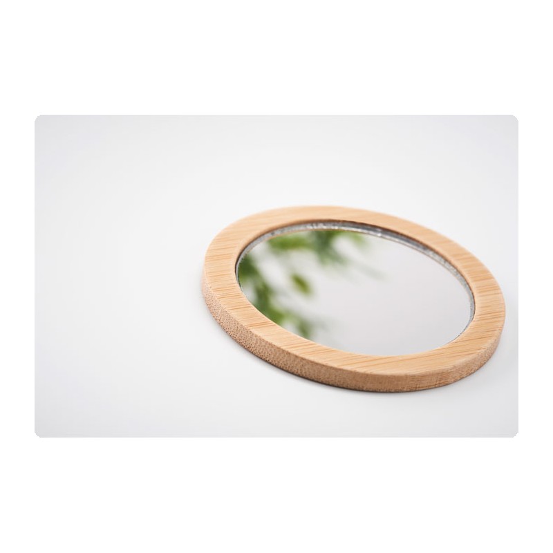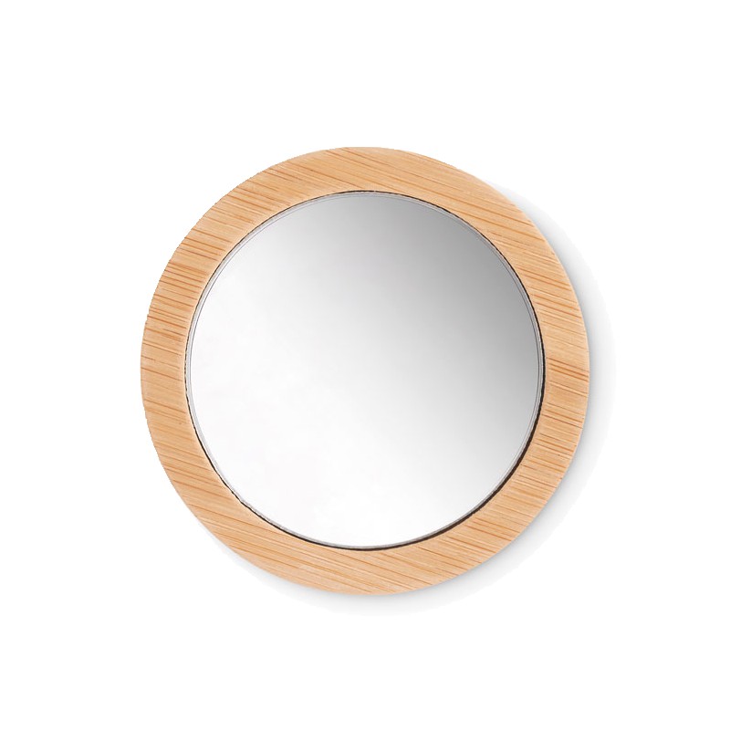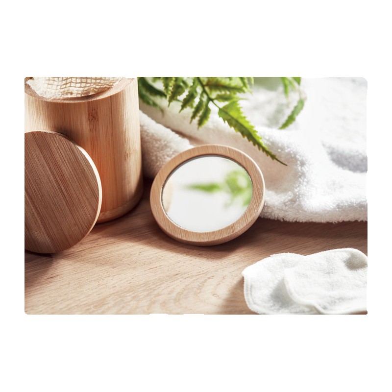 Miroir à maquillage simple face en bambou arrondi. Ce petit miroir est idéal à garder sur soi pour se maquiller ou vérifier rapidement son apparence. Il est présenté dans une pochette en coton avec cordon de serrage. Le bambou est un produit naturel, il peut y avoir de légères variations de couleur et de taille par article, ce qui peut affecter le résultat final de la décoration. FSC®-certified | FSC 100%, N5.7, FSC-C213206