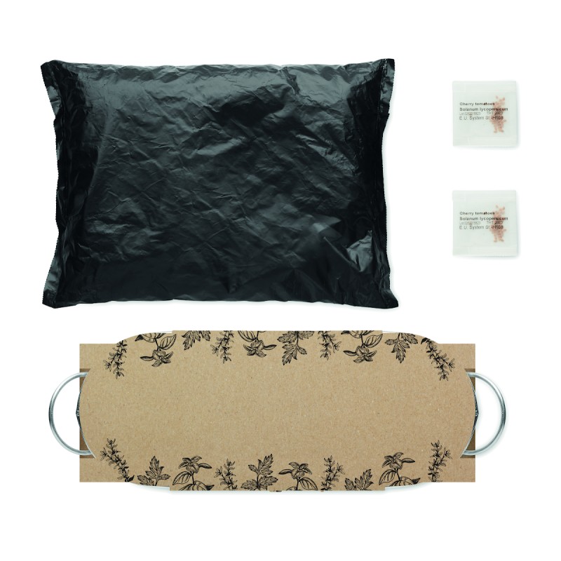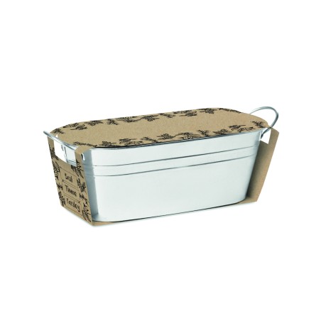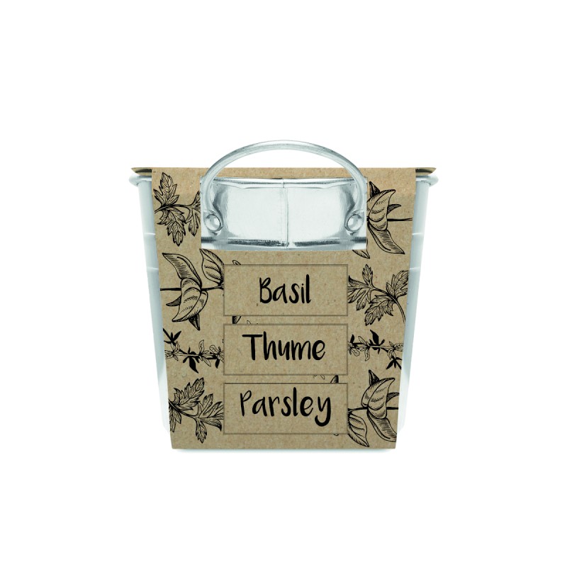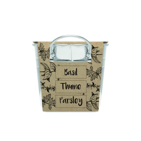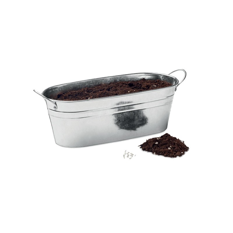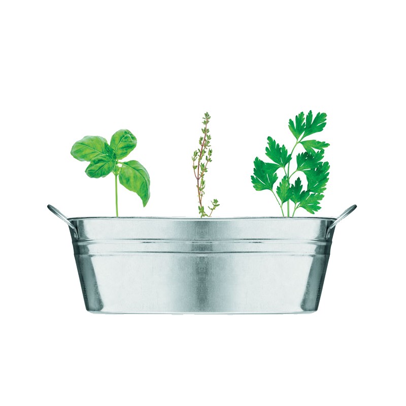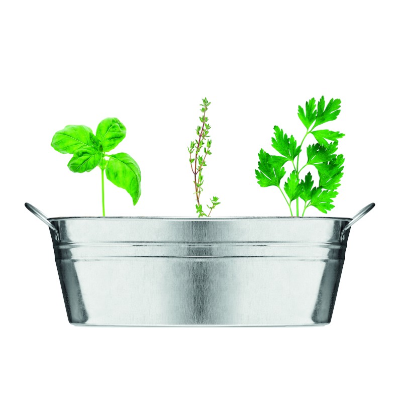 Bac à plantes en zinc avec une sélection de 3 herbes aromatiques. Graines de basilic, de thym et de persil, et compost de jardin. Fabriqué dans l'UE.