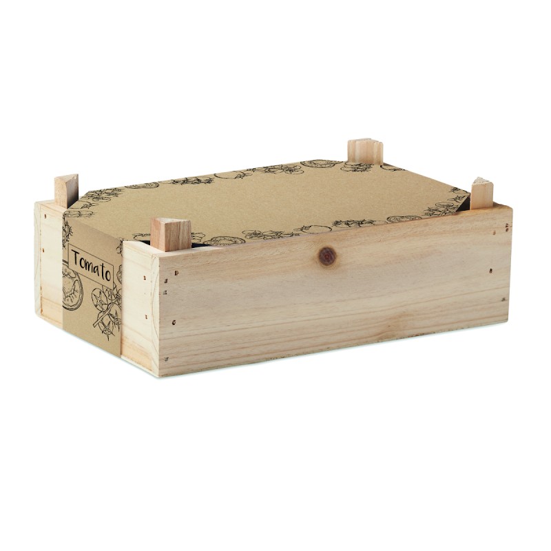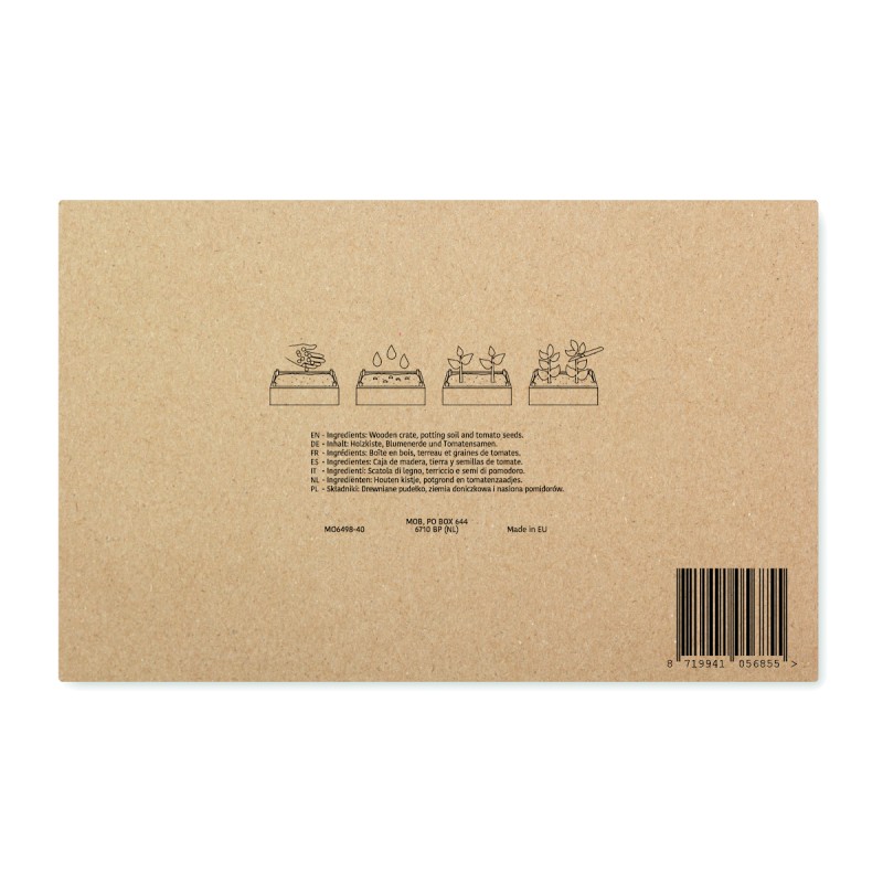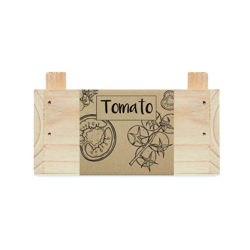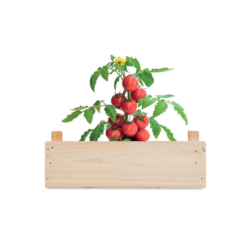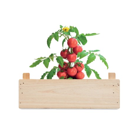 Kit de culture de tomates Roma (Solanum lycopersicum Roma ) dans une caisse en bois avec du compost de jardin. Fabriqué dans l'UE.