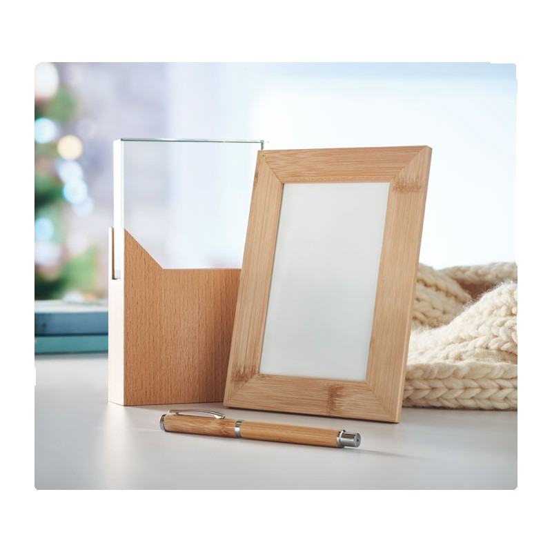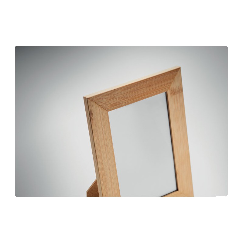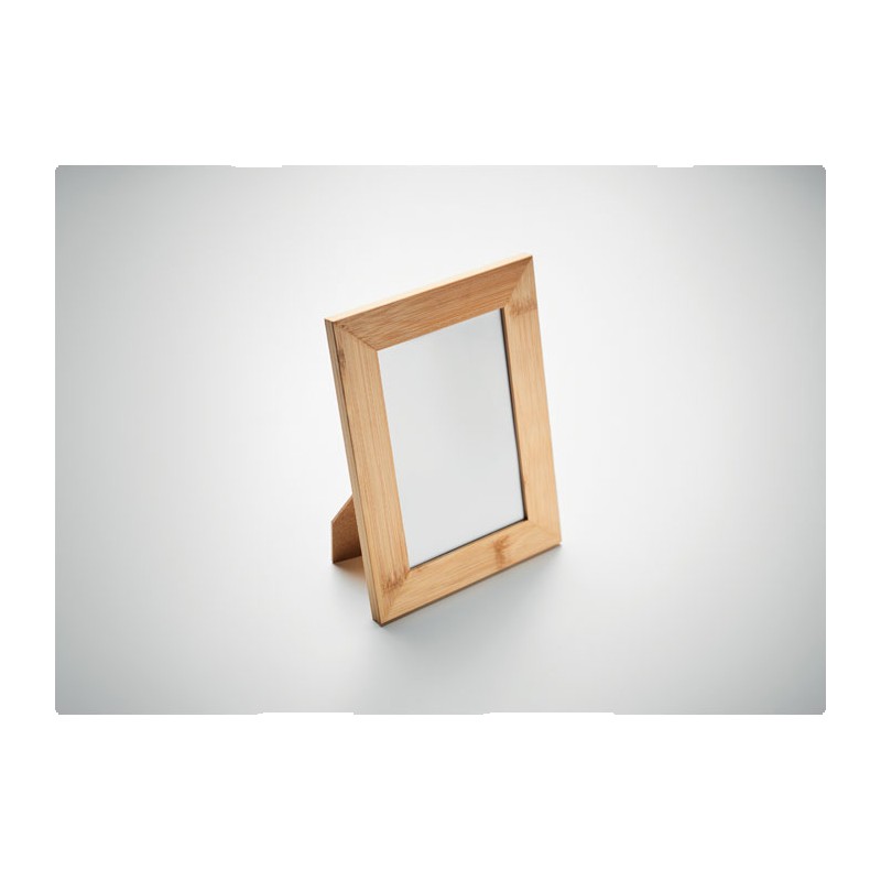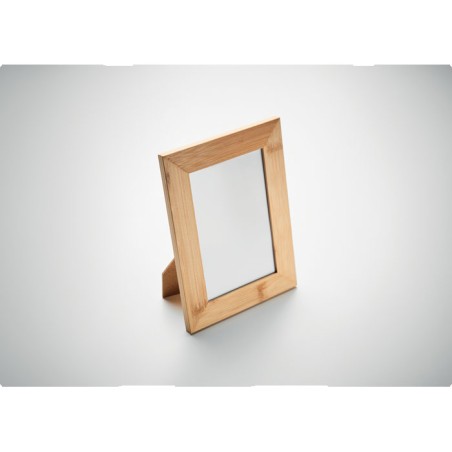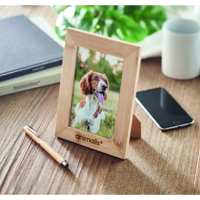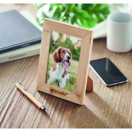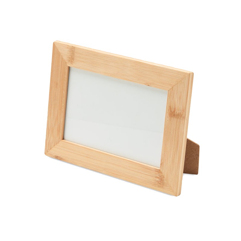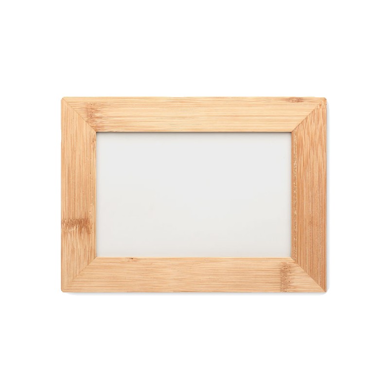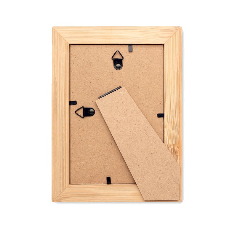 Cadre photo en bambou. Le cadre peut être suspendu, en position verticale ou horizontale. Taille de la photo : 15 x 10 cm. Le bambou est un produit naturel, et présente de légères variations de couleur, de décoration et de tailles.