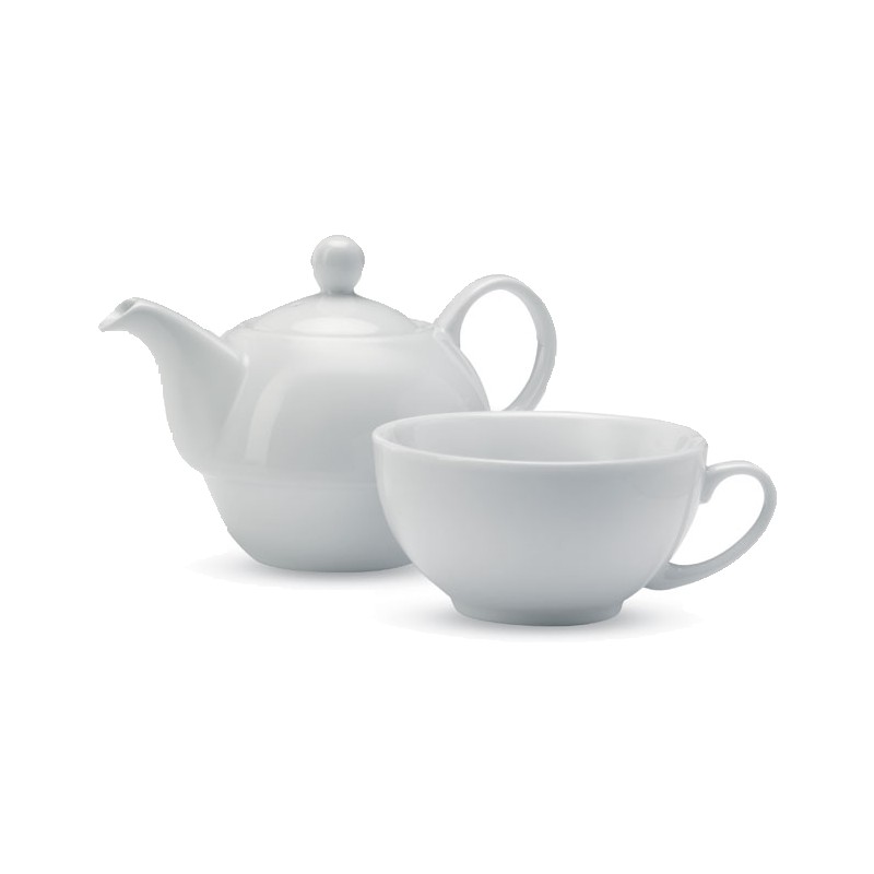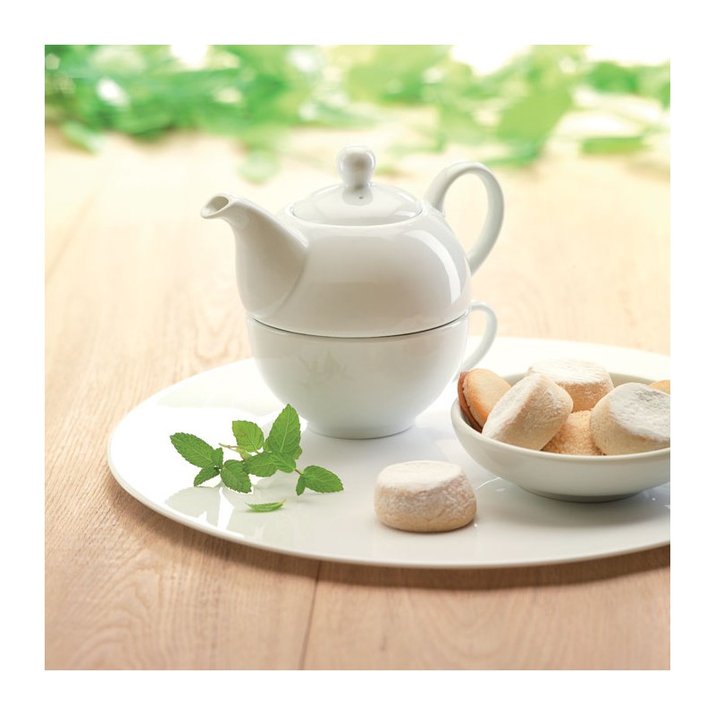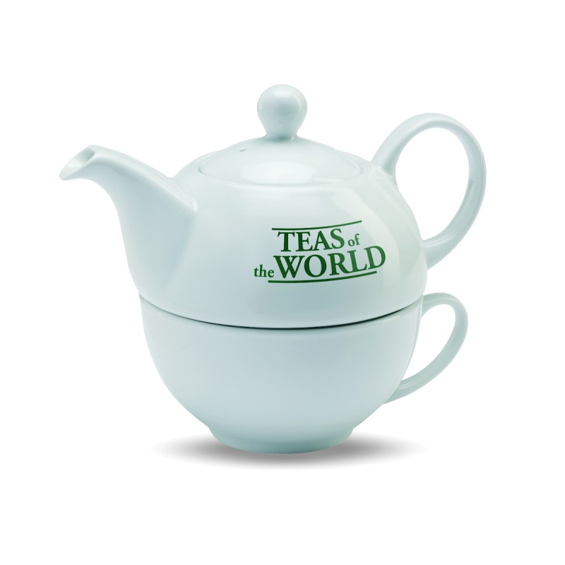 Set de thé comprenant une théière de 400 ml et une tasse en céramique blanche. Présenté dans un coffret cadeau individuel noir.