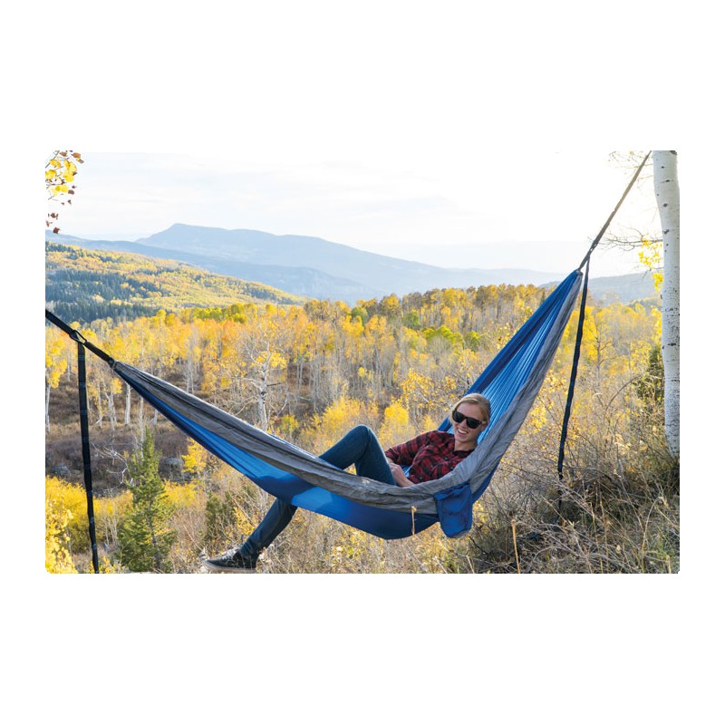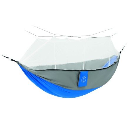 Hamac avec moustiquaire intégrée. Fabriqué en nylon léger et résistant. Pour une installation facile, la sangle et les mousquetons sont inclus. Ce hamac peut supporter jusqu'à 200 kg.