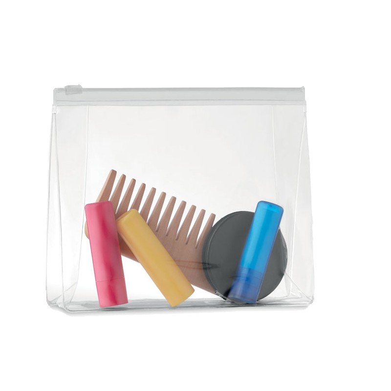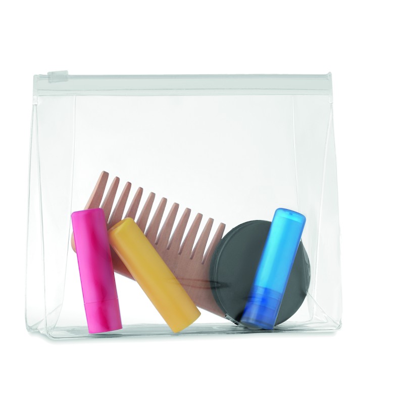 Trousse à cosmétiques en PVC avec fermeture zippée.