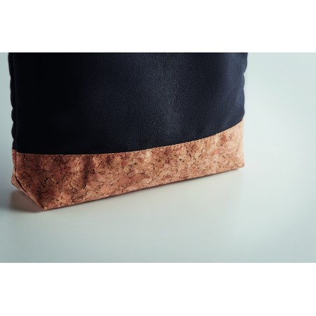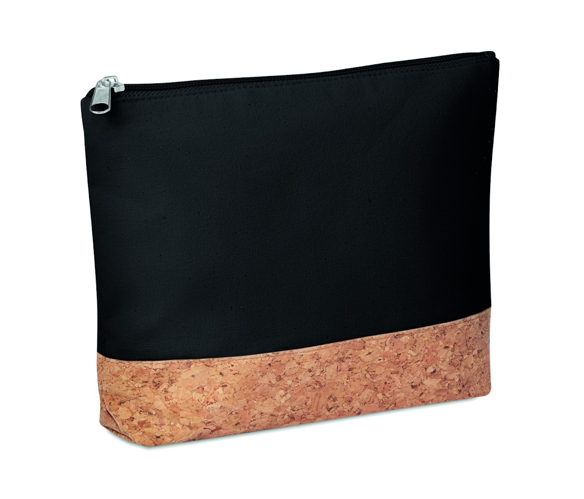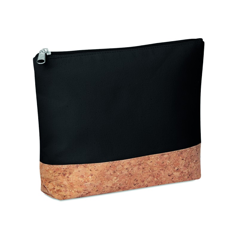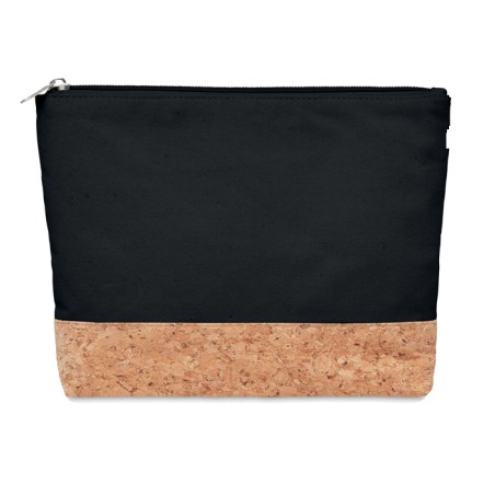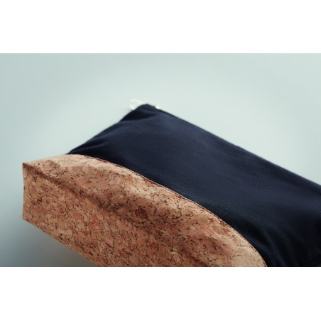Trousse à maquillage en coton avec détail en liège au bas. 220 gr/m². Le liège est un matériau naturel, en raison de sa nature structurelle et de sa porosité de surface, le résultat d'impression final par article peut présenter des écarts.