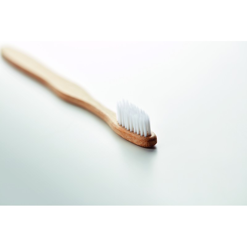 Brosse à dents avec manche en bambou et brosse en nylon. Présenté dans une boîte en papier kraft. Le bambou est un produit naturel, et présente de légères variations de couleur, de décoration et de tailles. FSC®-certified | FSC 100%, N5.7, FSC-C213206
