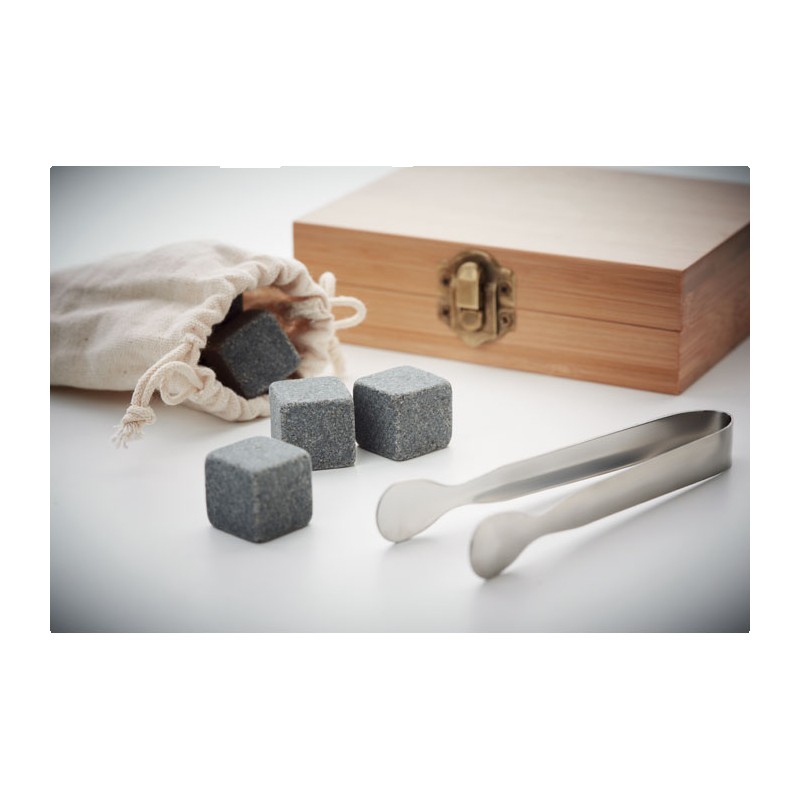 Set composé de 9 pierres réutilisables dans une boîte bambou, une pochette coton et des pinces. Le bambou est un produit naturel, il peut y avoir des variations de couleur et de taille par article.