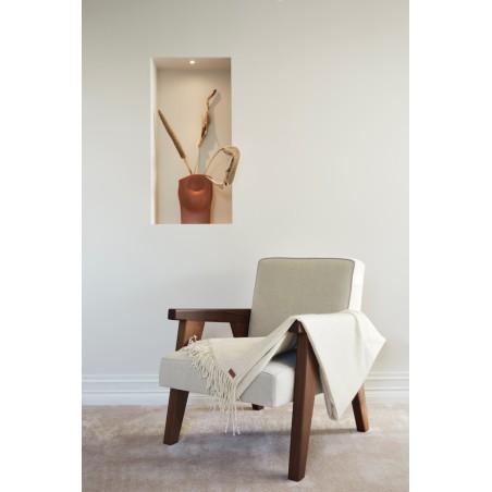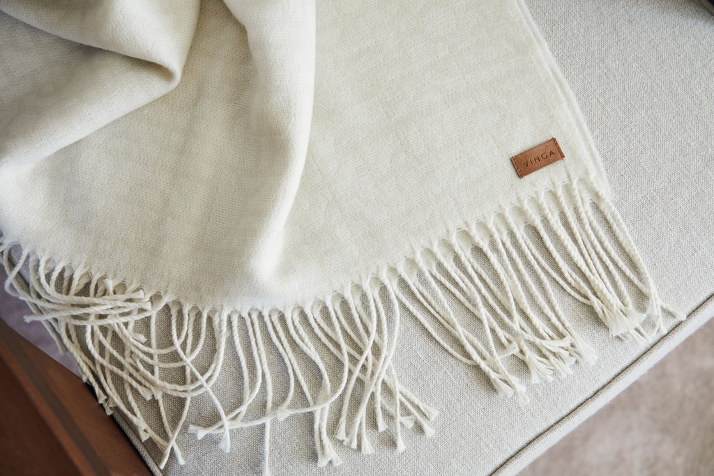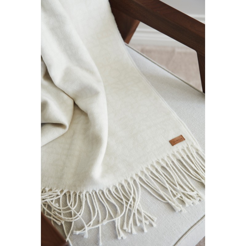Couverture à imprimé géométrique délicat qui sera du plus bel effet dans votre intérieur et s'intègrera parfaitement à tout style de décoration. Fabriquée dans un matériau synthétique facile à nettoyer mais conservant un toucher agréable. Le tissu est conçu pour imiter la fibre de laine, pour un confort accru.