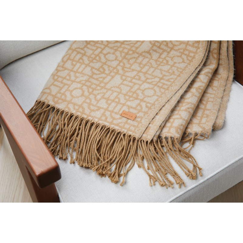 Couverture à imprimé géométrique délicat qui sera du plus bel effet dans votre intérieur et s'intègrera parfaitement à tout style de décoration. Fabriquée dans un matériau synthétique facile à nettoyer mais conservant un toucher agréable. Le tissu est conçu pour imiter la fibre de laine, pour un confort accru.