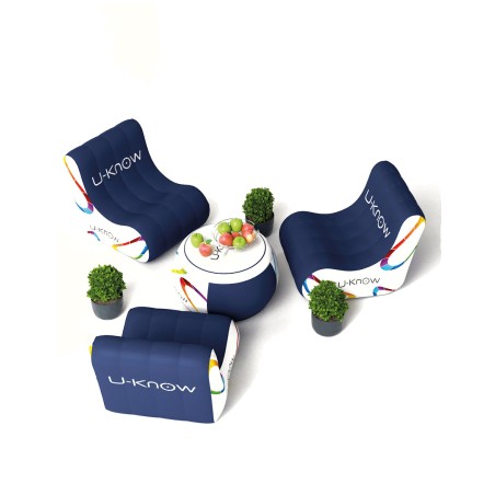 Peu encombrant et léger, ce pouf gonflable personnalisable trouvera sa place en intérieur comme en extérieur. Facile à mettre en place, économique dans le transport et le stockage : il sera votre atout communication pour vos opérations événementielles. Les compartiments de la strutre gonflable en PVC assurent une stabilité de forme et d'assise ainsi qu'une grande résistance. Housse en polyester spandex 260g/m² imprimée en sublimation numérique haute définition. L’ensemble est livré monté : il ne reste qu’à gonfler en 30 secondes avec une pompe manuelle ou un gonfleur électrique..Structure disponible sur stock dans notre entrepôt parisien, impression réalisée après validation de la commande