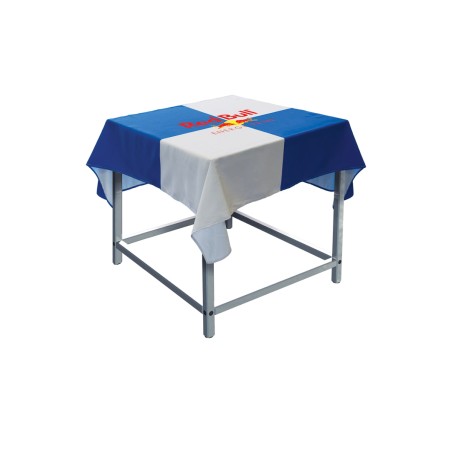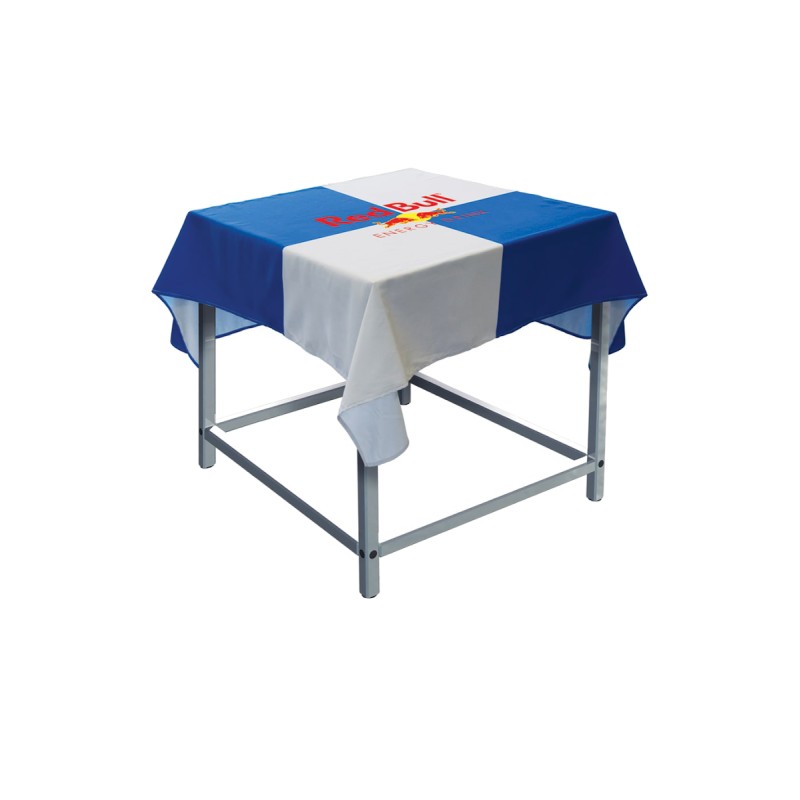 Nappe déperlante personnalisée 100% polyester Twill 150 g / m². Impression en sublimation numérique Haute Définition sur le recto, non visible au verso. Finition avec ourlets et couture sur tout le contour de la nappe. Nappe livrée sous polybag individuel. Lavable en machine à 30°. Dimensions sur-mesure possible : nous consulter. Laize maximum : 150 cm