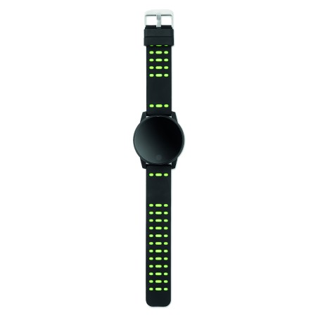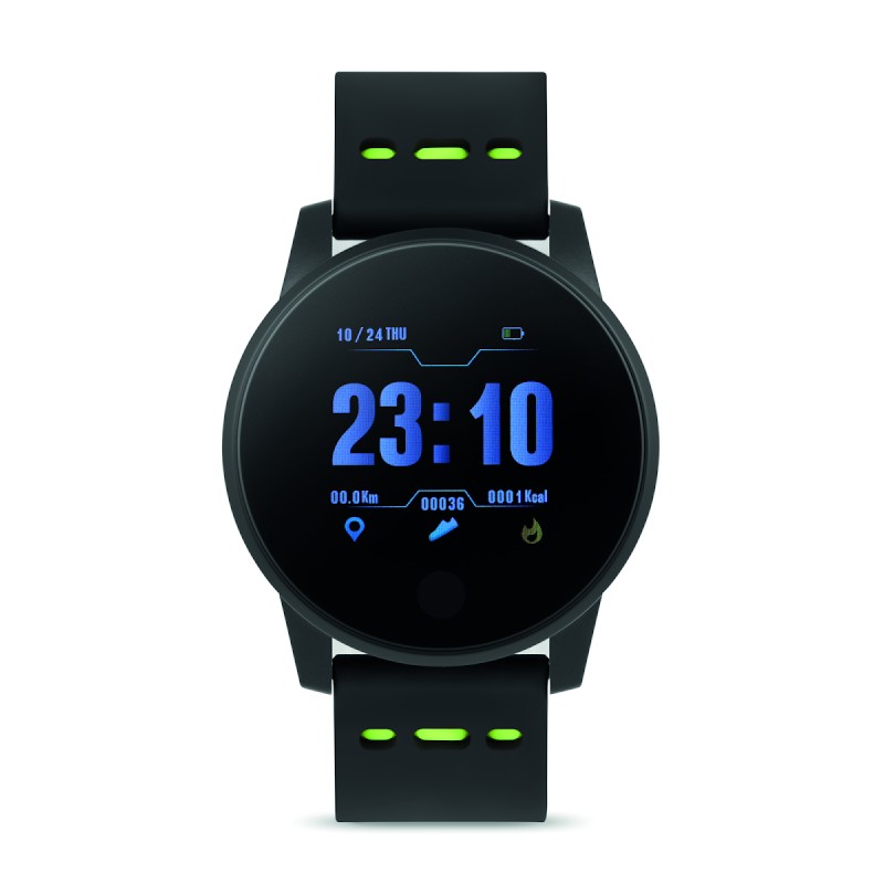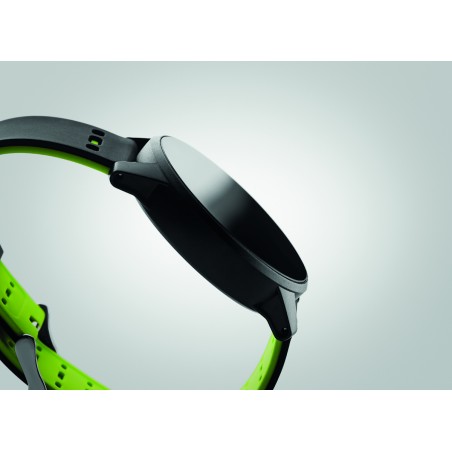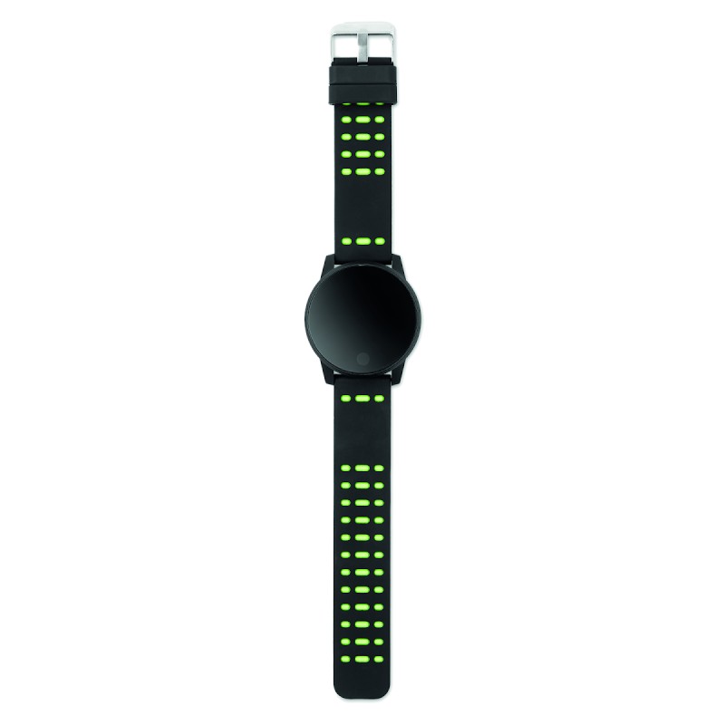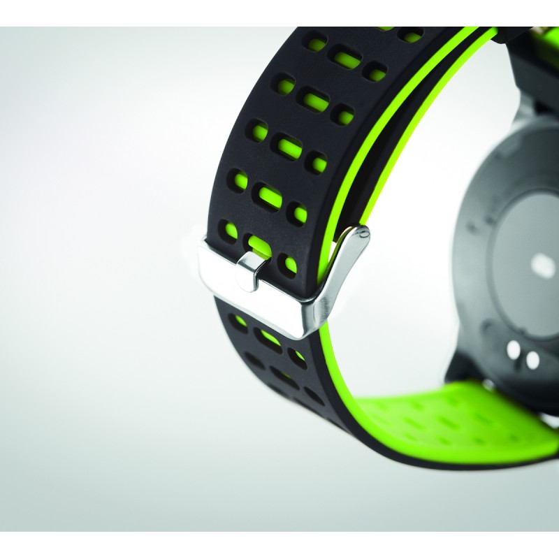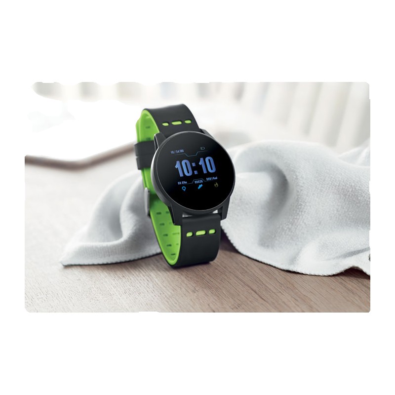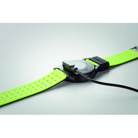Montre sportive intelligente sans fil 4.2 à faible consommation d'énergie avec bracelet en silicone. Batterie rechargeable Li-Pol 180 mAh. Étanchéité IPX7. Nécessite une application gratuite (wearfit disponible sous iOS et Android.