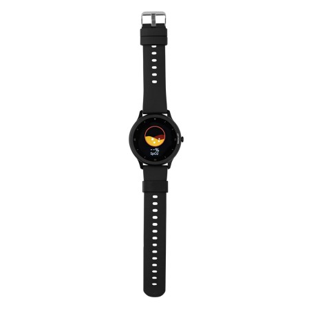 Montre moderne et performante dotée d'un écran tactile 1,28 pouce rond et à réponse rapide pour suivre vos activités. Fabriquée avec un bracelet en TPU recyclé certifié RCS (Recycled Claim Standard) et un cadre en alliage de zinc. Contenu recyclé total : 23% sur la base du poids total de l'article. La certification RCS garantit une chaîne d'approvisionnement entièrement certifiée pour les matériaux recyclés. Les fonctions sont : Compteur de pas, calories, distance, suivi multisports (24 types) réveil, suivi de la fréquence cardiaque, surveillance de la pression artérielle, moniteur de sommeil, notifications des réseaux sociaux. Compatible avec Android 4.4 et IOS 8.0 et plus. Étanchéité à l'eau et à la poussière selon la norme IPX 68. BT 5.0. Autonomie en veille de 25 jours et temps de travail jusqu'à 7 jours. Chargeur à clip inclus pour charger la montre. Emballé dans un emballage kraft FSC® mix. Article et accessoires 100% sans PVC.