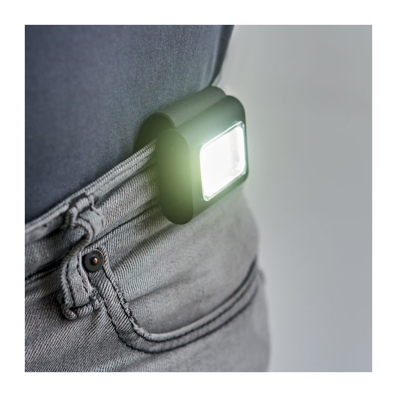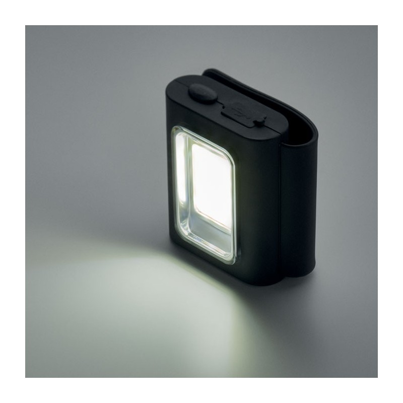 Mini lampe COB de poche USB 400 mAh rechargeable . 150 lumen. 6 modes d'éclairage. Comprend un clip en silicone et une fermeture magnétique.