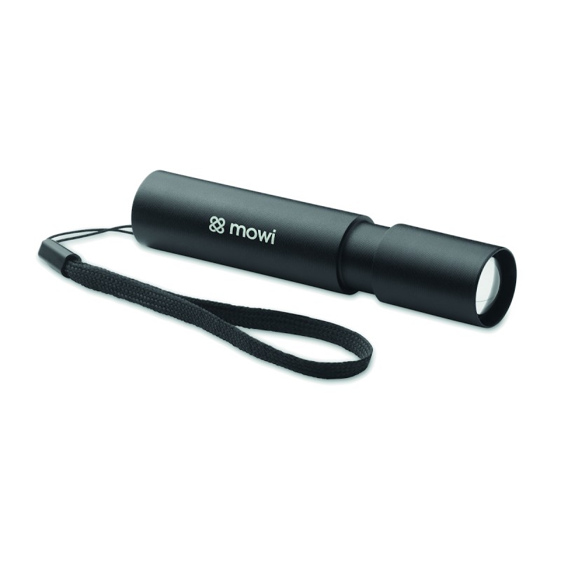 Torche rechargeable et réglable avec 1 LED (50 lumens) et 3 modes d'éclairage. Batterie rechargeable intégrée de 400 mAh et câble de chargement inclus.