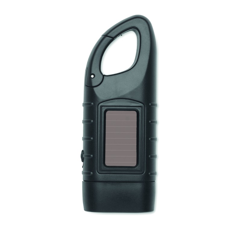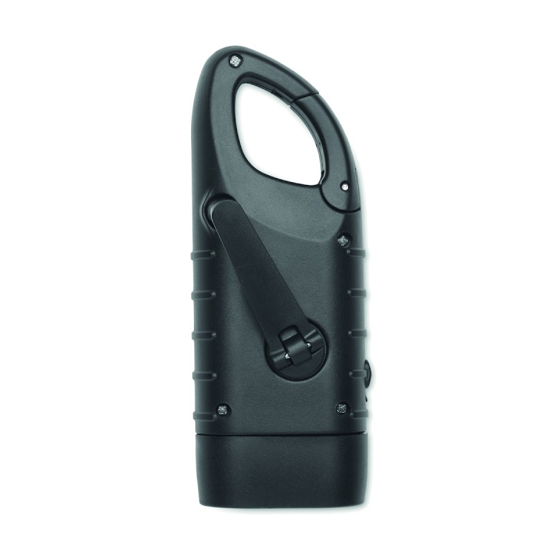 Torche à 3 LED blanches alimentée à la fois par un panneau solaire et une manivelle dynamo avec une batterie de 40 mAh en ABS recyclé.