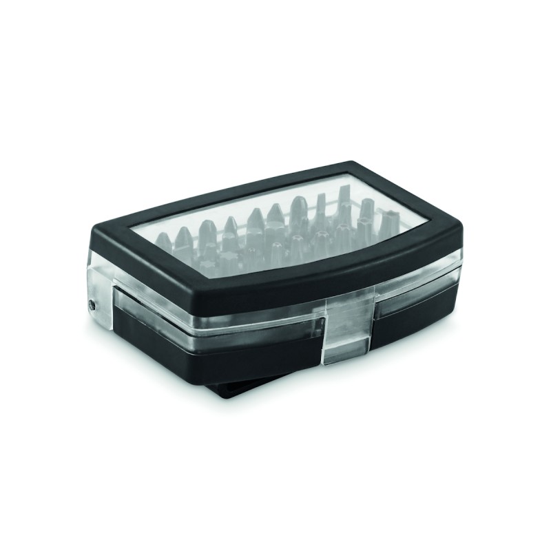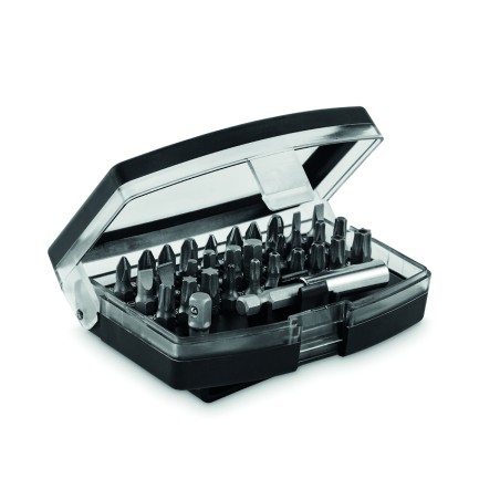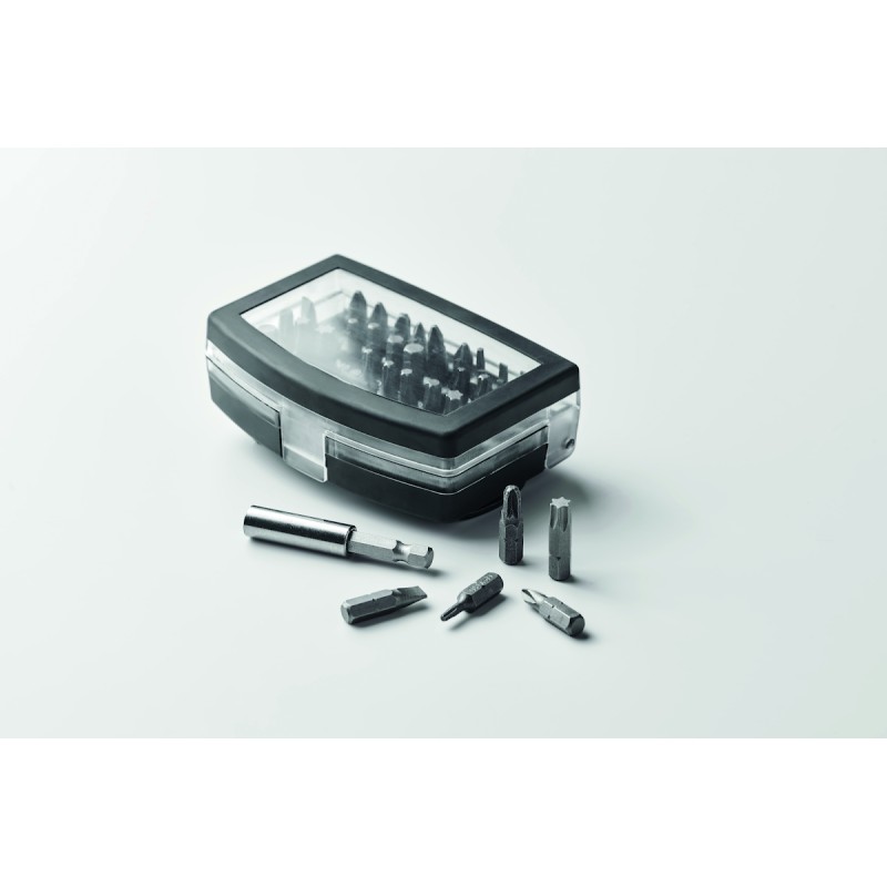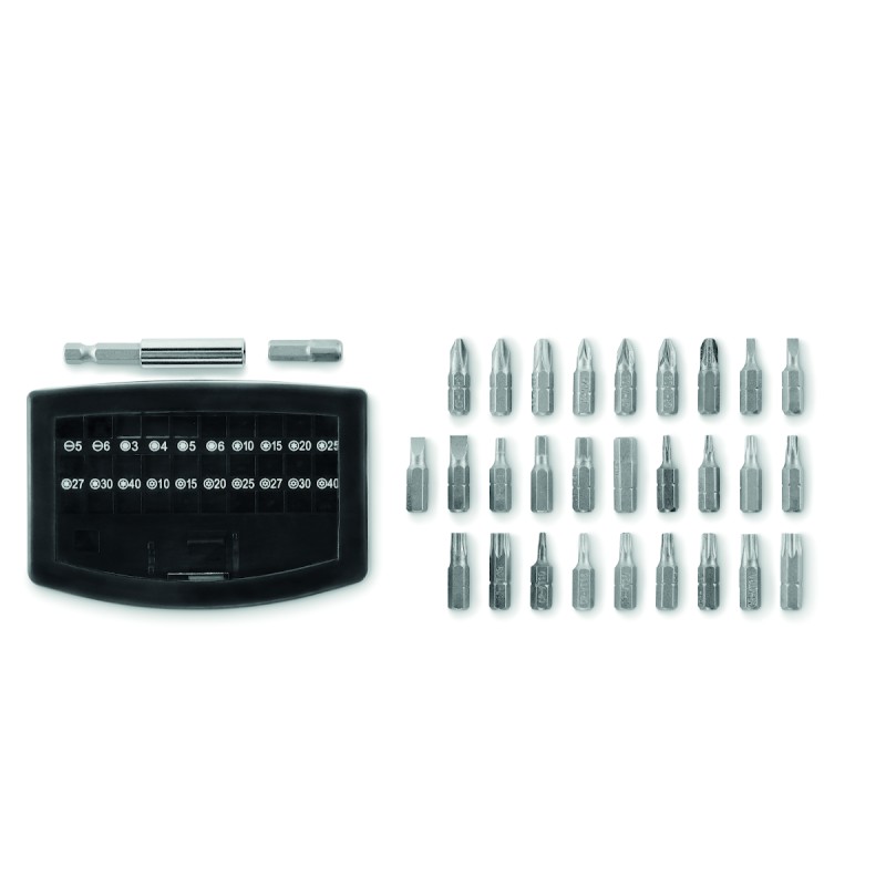 Jeu d'embouts de tournevis de 32 pièces avec porte-clips rotatif.
