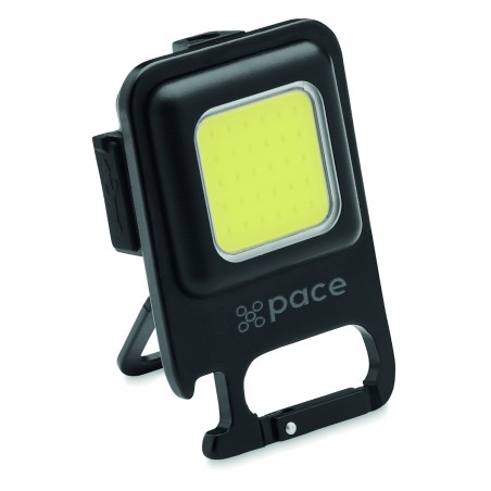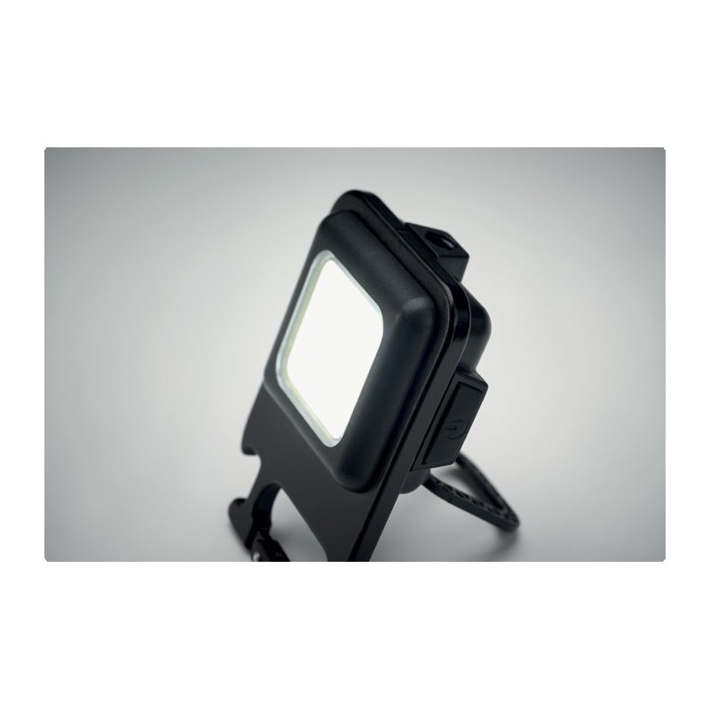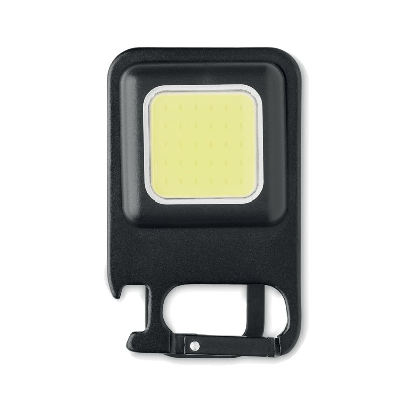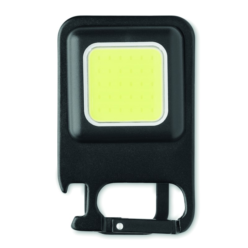 Mini lampe de poche portable multifonctionnelle 400 mAh rechargeable par USB en aluminium 6W COB avec aimant, mousqueton et décapsuleur. Flux lumineux : 800 lm. 3 modes d'éclairage (fort, faible et clignotant).