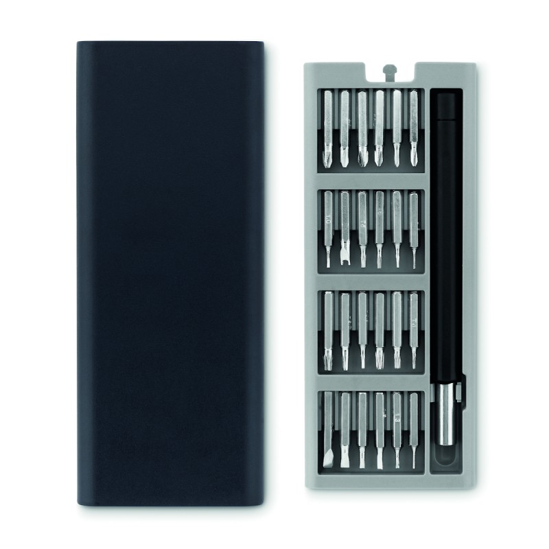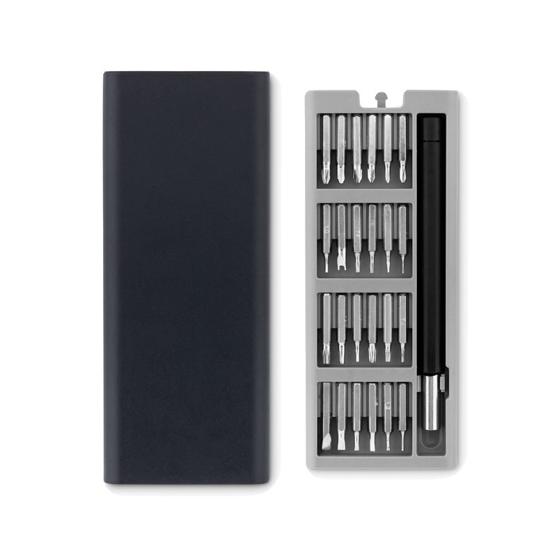 24 petits tournevis de précision pour réparation présenté dans un boîtier en ABS magnétique avec ouverture à poussoir.