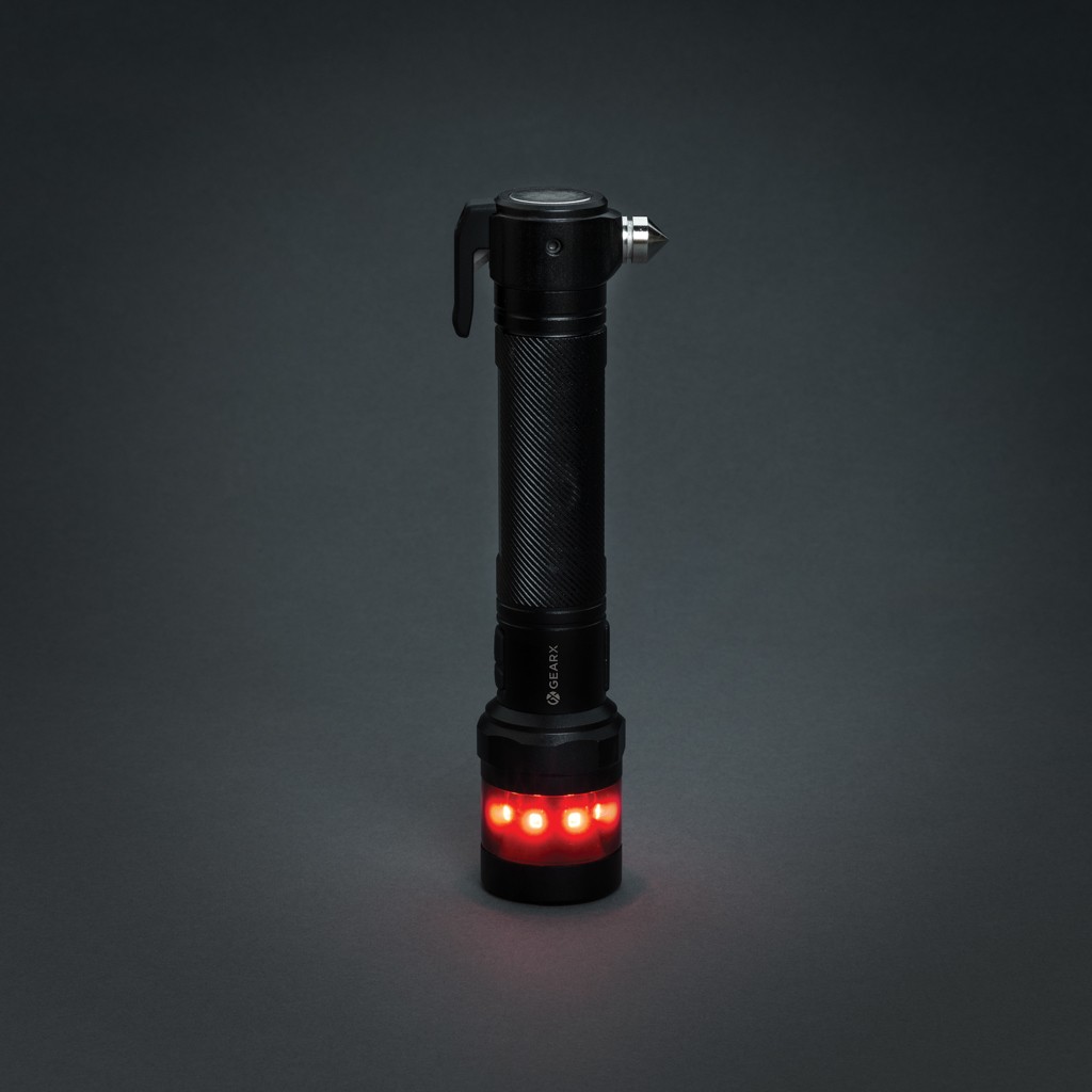 Outil de sécurité automobile robuste fabriqué à partir d'aluminium recyclé et d'ABS certifiés RCS. Contenu recyclé total : 59% sur la base du poids total de l'article. La certification RCS garantit une chaîne d'approvisionnement entièrement certifiée pour les matériaux recyclés. La torche utilise une batterie lithium rechargeable de qualité A de 2000 mAh, il n'est donc pas nécessaire de remplacer les piles. Il suffit de la recharger via une prise USB. Puissante torche de 500 lumens avec un faisceau jusqu'à 100 mètres. La lumière LED a 4 modes (100%, 50%, 30% et clignotant) Avec LED rouge d'urgence qui peut fonctionner en 3 modes (flash rapide, flash lent et SOS). Avec coupe-ceinture et marteau à vitre intégrés. Aimant permettant de le fixer sur une surface magnétique. Durée de fonctionnement avec une seule charge : 2 heures. Étanchéité IPX 4.