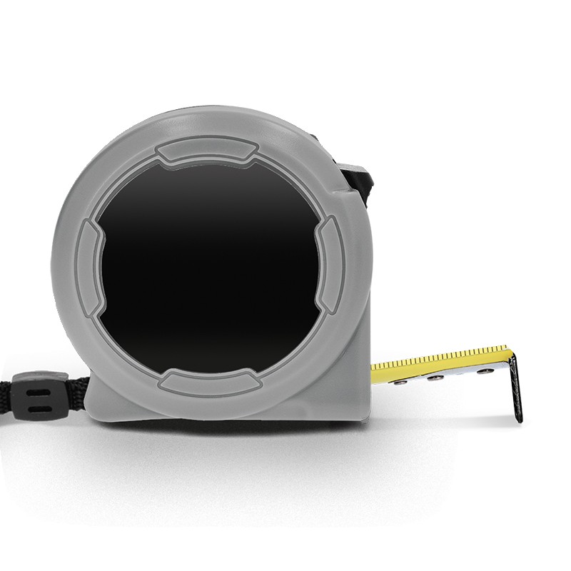 Mètre ruban jaune 3 m x 16 mm auto-bloquant, coque plastique. Clip de ceinture en métal, dragonne noire et bouton de blocage. Livré en boite individuelle illustrée. Marquage 1 couleur argent conseillé et par défaut ou QUADRIDOME.