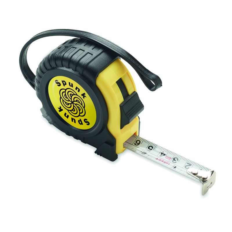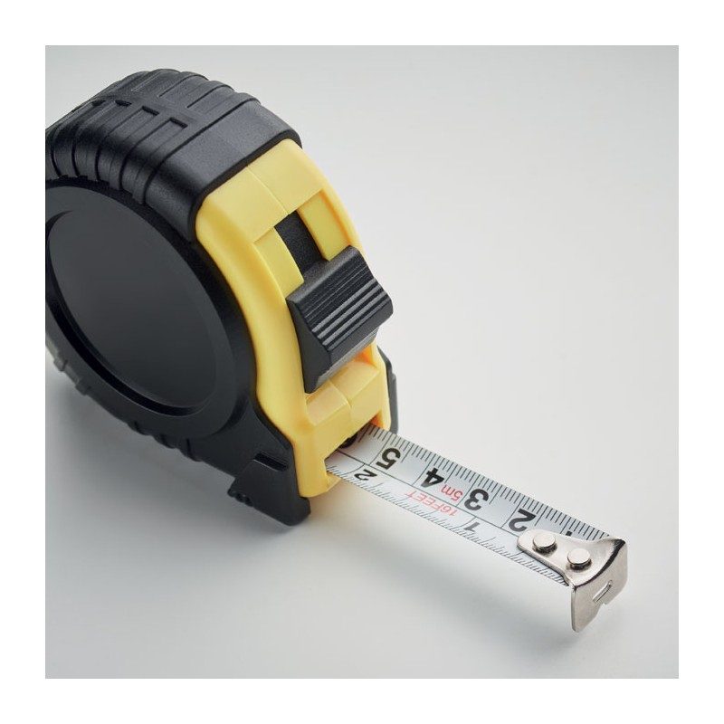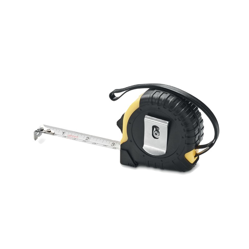 Mètre 5 m en ABS. Avec dragonne et clip métallique argenté brillant. (CM/INCH)
