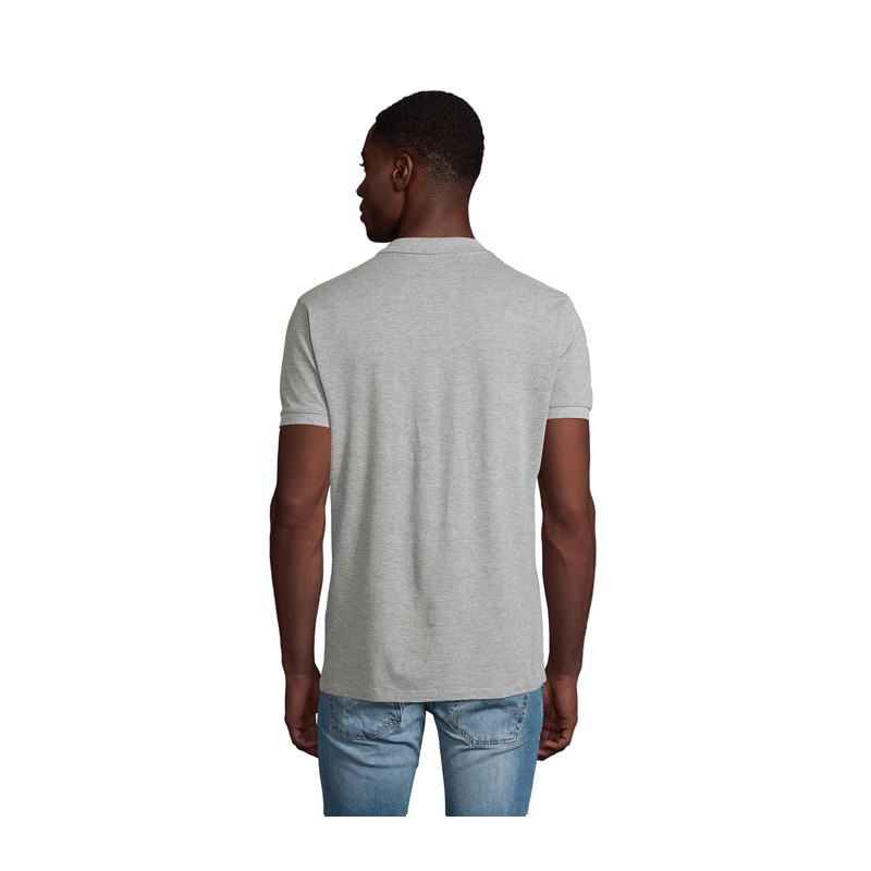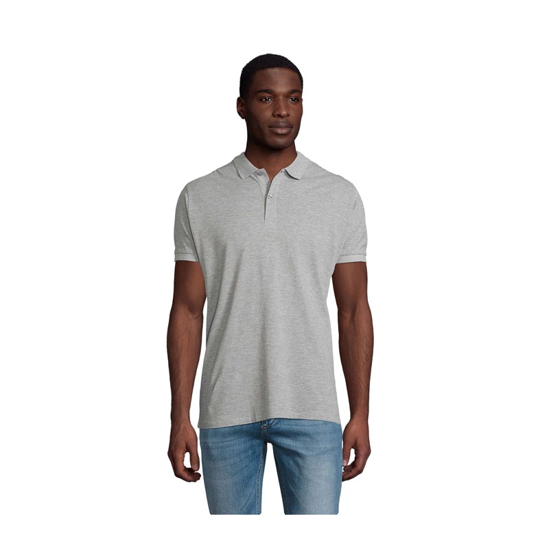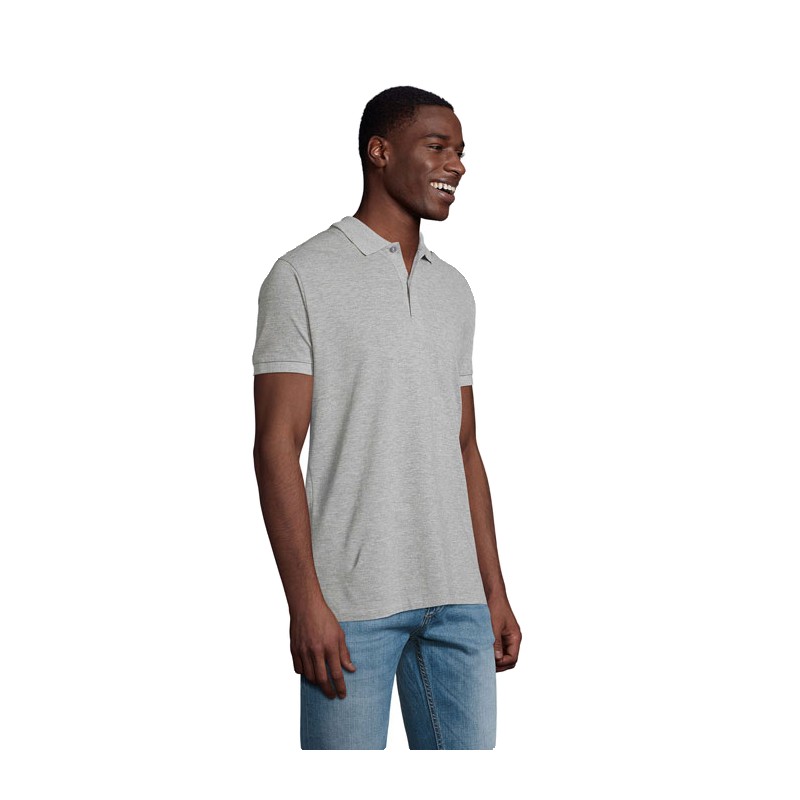 SOL'S PLANET MEN, polo homme, 100% coton issu de l'agriculture biologique maille piquée 170, col en côte, bande de propreté au col, patte boutonnée renforcée, manches courtes, patte 2 boutons ton sur ton, bas droit, coupé cousu, bouton de rechange sur couture intérieure côté, (1) gris chiné : 85 % coton bio chart dans la documentation produit.