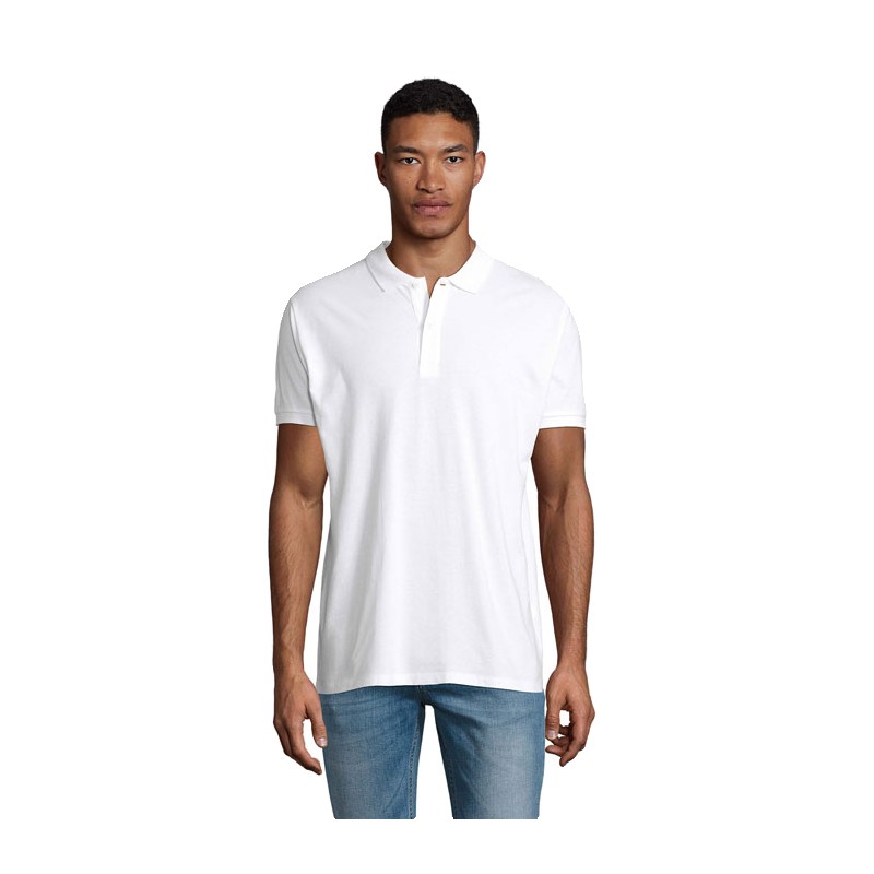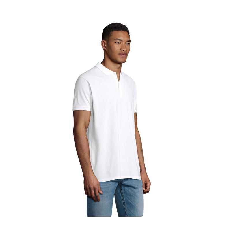 SOL'S PLANET MEN, polo homme, 100% coton issu de l'agriculture biologique maille piquée 170, col en côte, bande de propreté au col, patte boutonnée renforcée, manches courtes, patte 2 boutons ton sur ton, bas droit, coupé cousu, bouton de rechange sur couture intérieure côté, (1) gris chiné : 85 % coton bio chart dans la documentation produit.