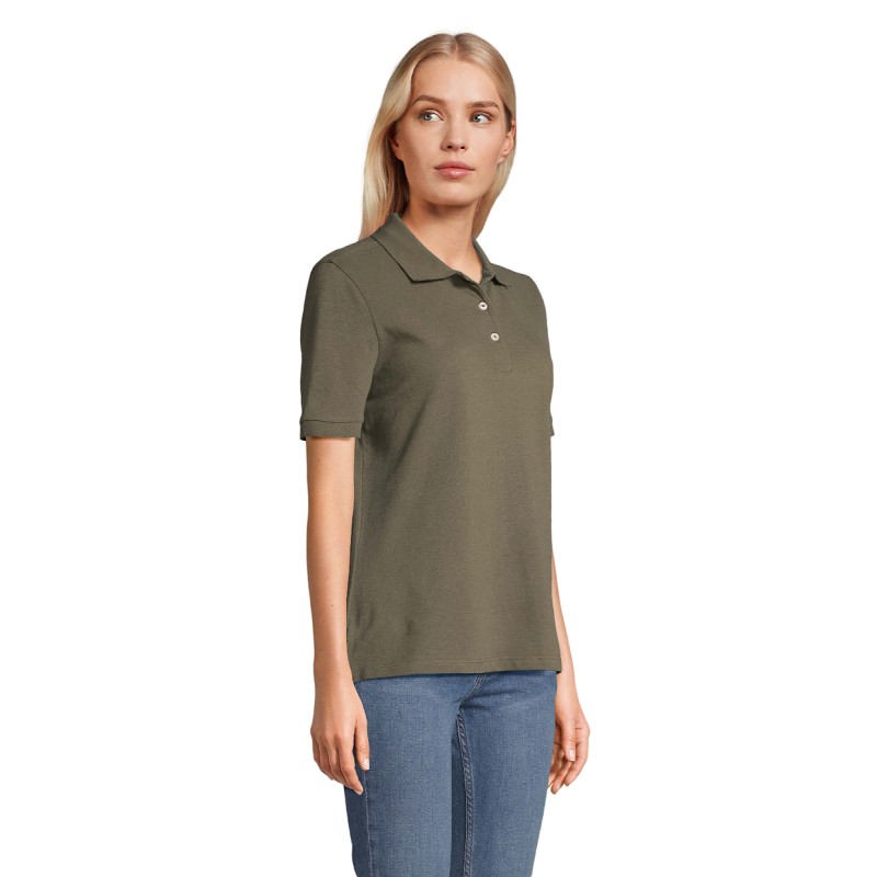SOL'S PACIFIC WOMEN POLO, polo femme, 100% coton peigné ringspun, new fit - coupe confortable, manches courtes, coupé cousu, col et bas de manches en côte avec de l'élasthanne, bande de propreté au col, patte de boutonnage renforcée avec 3 boutons écrus, bas droit avec fentes latérales renforcées, bouton de rechange sur couture intérieure côté. Pour la correspondance des tailles, veuillez vous référer au size chart dans la documentation produit.