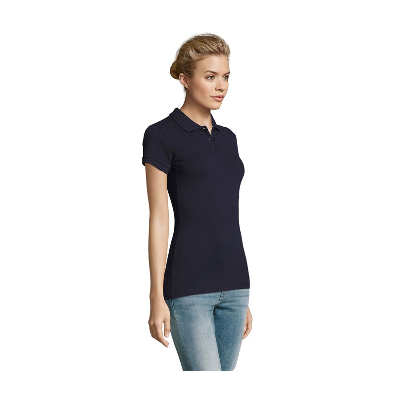SOL'S PERFECT WOMEN, POLO FEMME, 100% coton peigné Ringspun Maille piquée 180, Col et bas de manches en côte 1x1, Bande de propreté au col, Manches courtes, Patte de col 3 boutons nacrés ton sur ton, Coupé cousu, Coupe cintrée, Bouton de rechange dans couture intérieure côté, (1) Blanc chiné : 98 % coton / 2 % viscose, (2) Gris chiné : 85 % coton / 15 % viscose, (3) Anthracite chiné : 60 % coton / 40 % polyester; (4) Oxblood chiné : 57 % coton / 38 % polyester / 5 % élasthanne; (5) Denim chiné : 57 % coton / 38 % polyester / 5 % élasthanne. Pour la correspondance des tailles, veuillez vous référer au size chart dans la documentation produit.