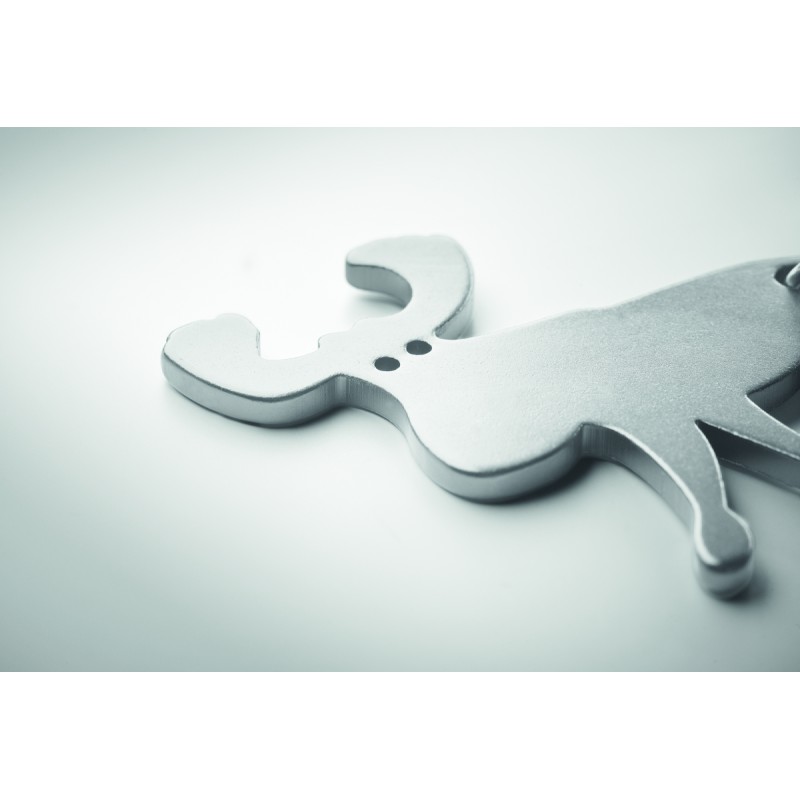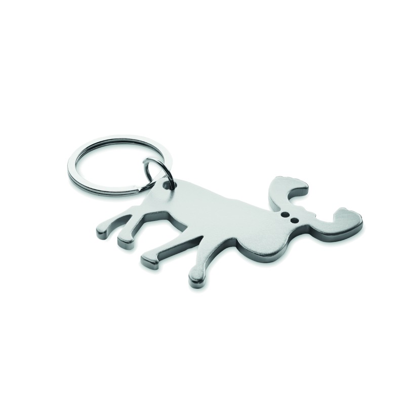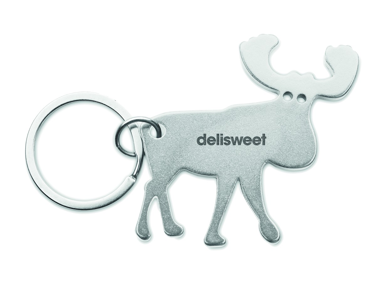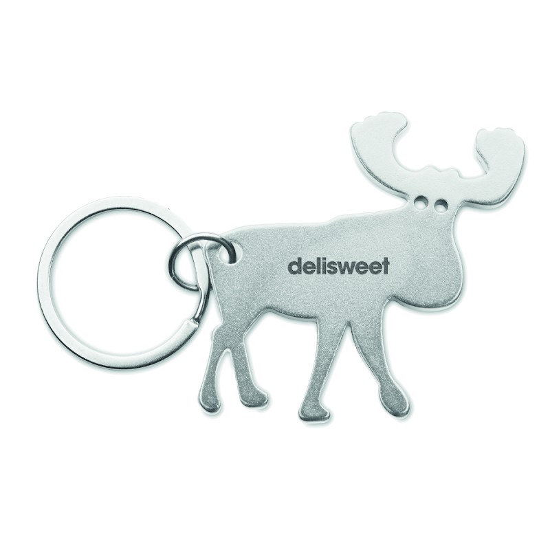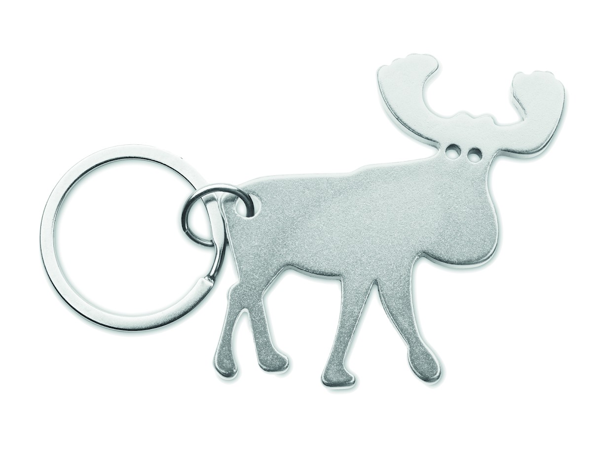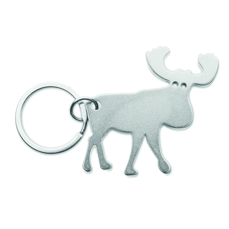 Porte-clés en aluminium recyclé avec décapsuleur en forme de renne.