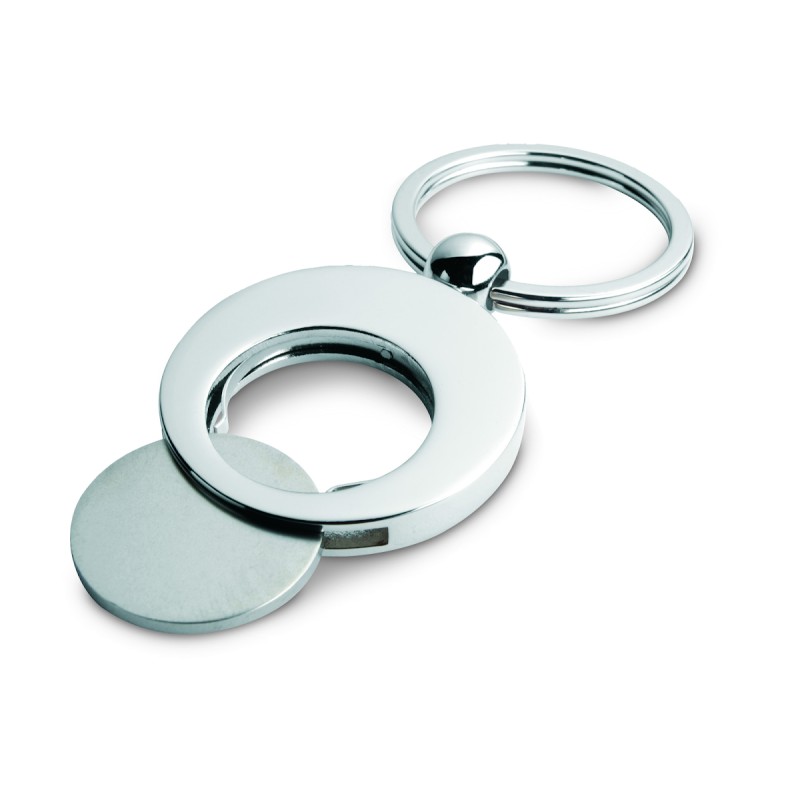 Porte-clés rond en alliage de zinc avec jeton. Idéal pour aller faire vos courses.