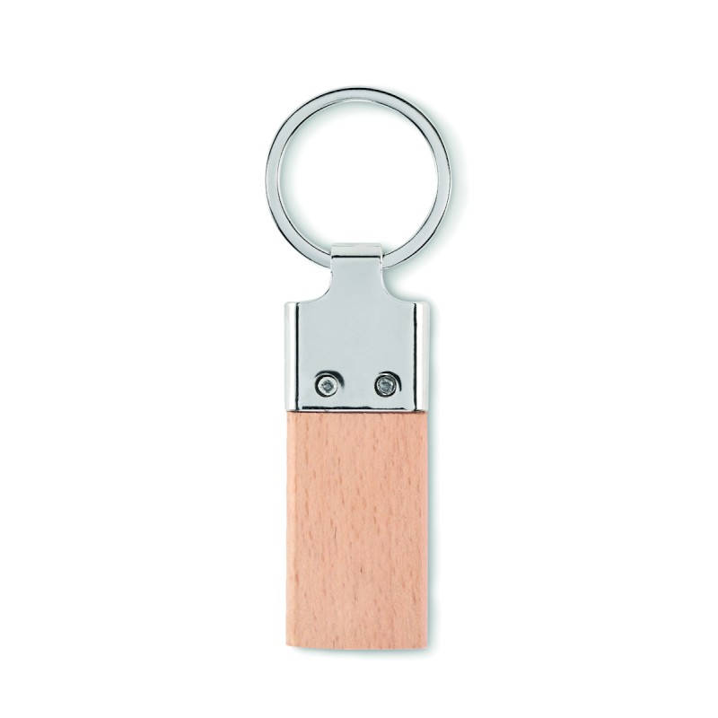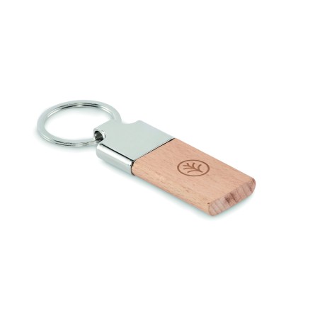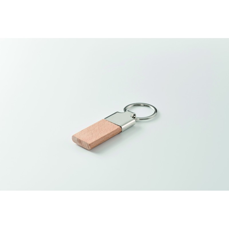 Porte-clés rectangulaire en alliage de zinc et hévéa.