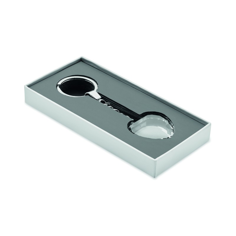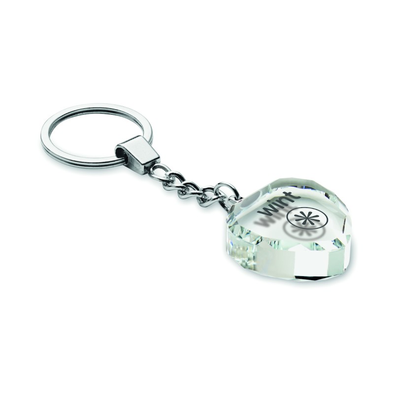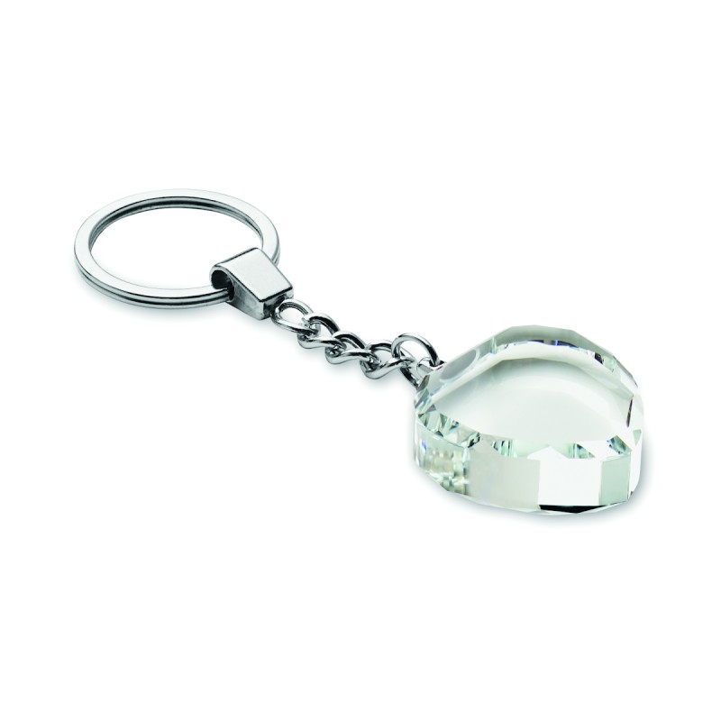 Porte-clés en verre en forme de coeur. Présenté dans une boîte cadeau.
