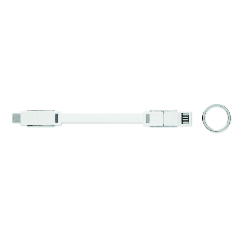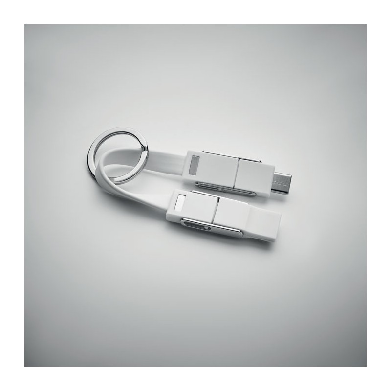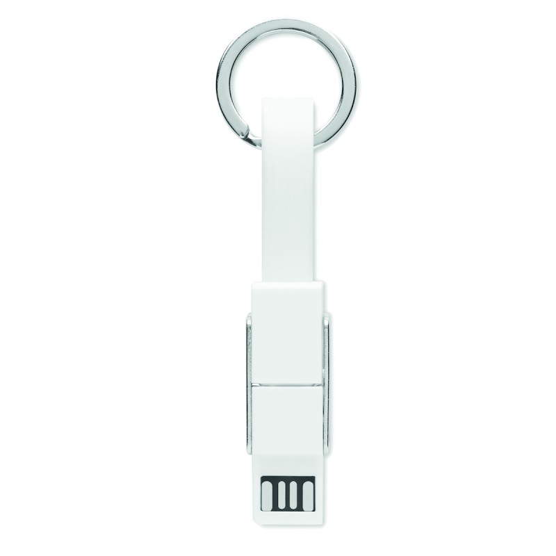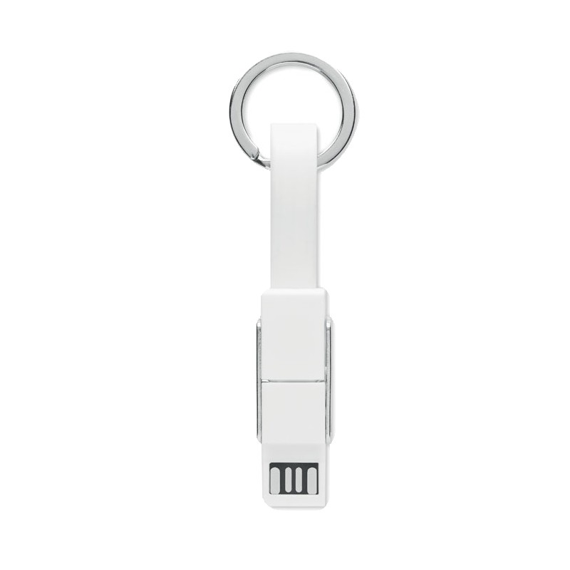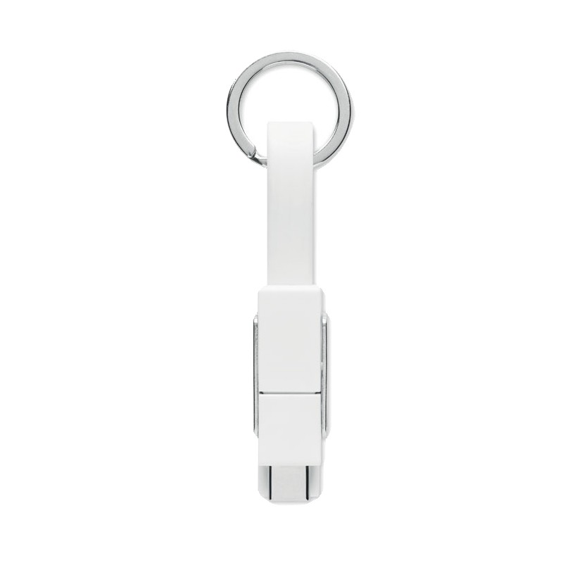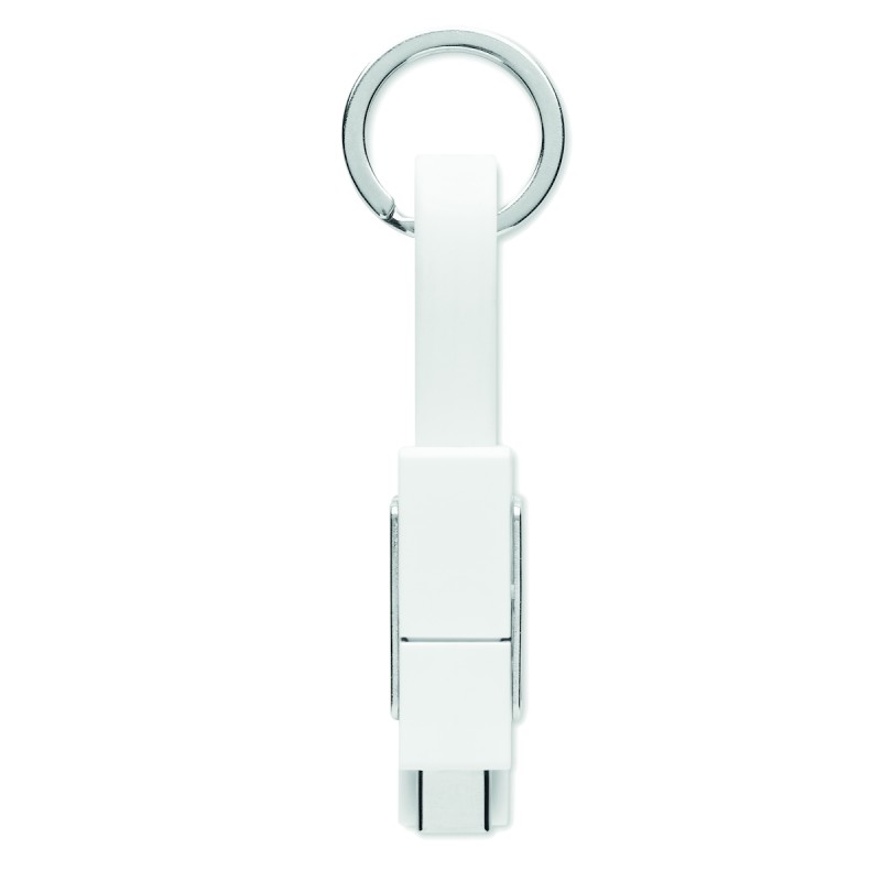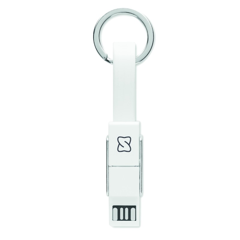 Porte-clés avec câble de chargement 4-en-1 câble de chargement. Entrée/Sortie : Type-C x2, Type-A, Micro USB.