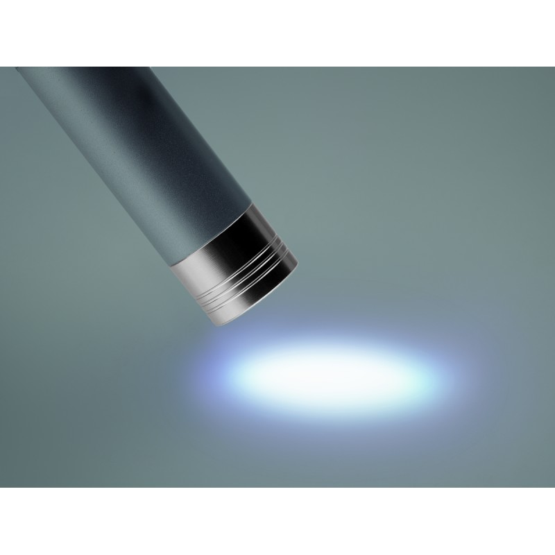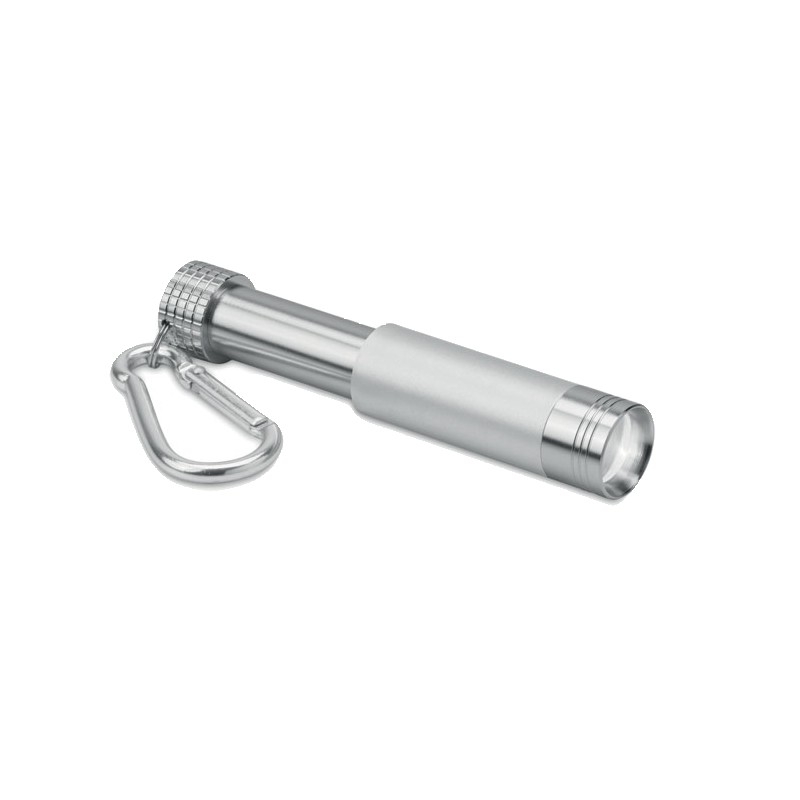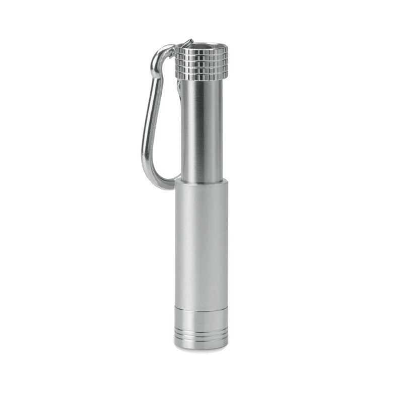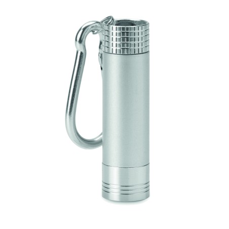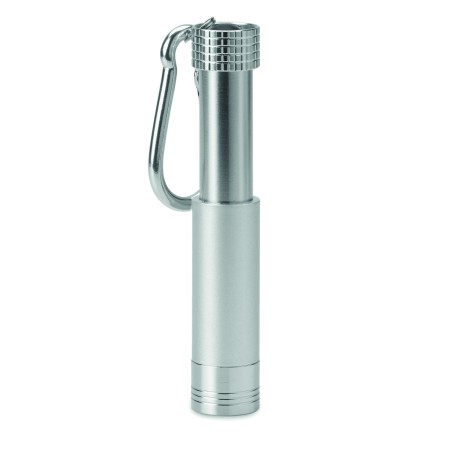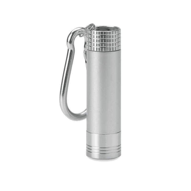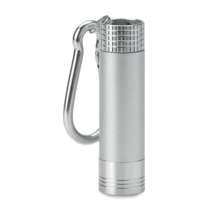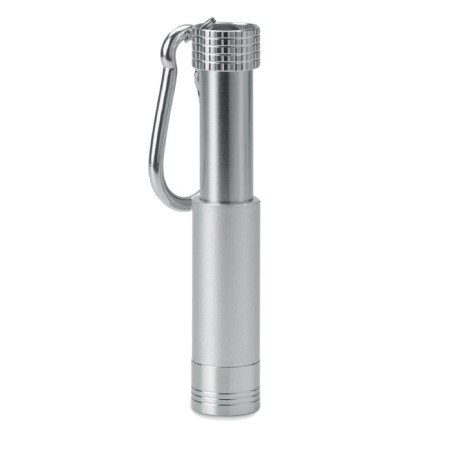 Mini lampe LED en porte-clés en aluminium et ABS logo peut être gravé au laser et sera illuminé. 4 piles LR44 incluses.