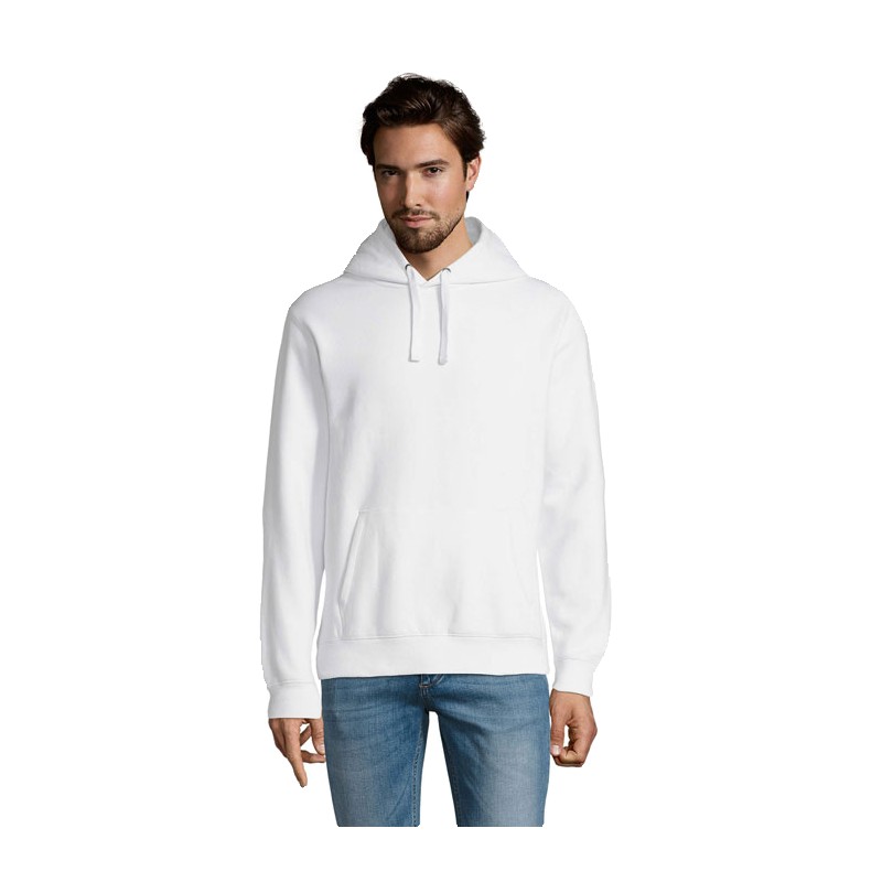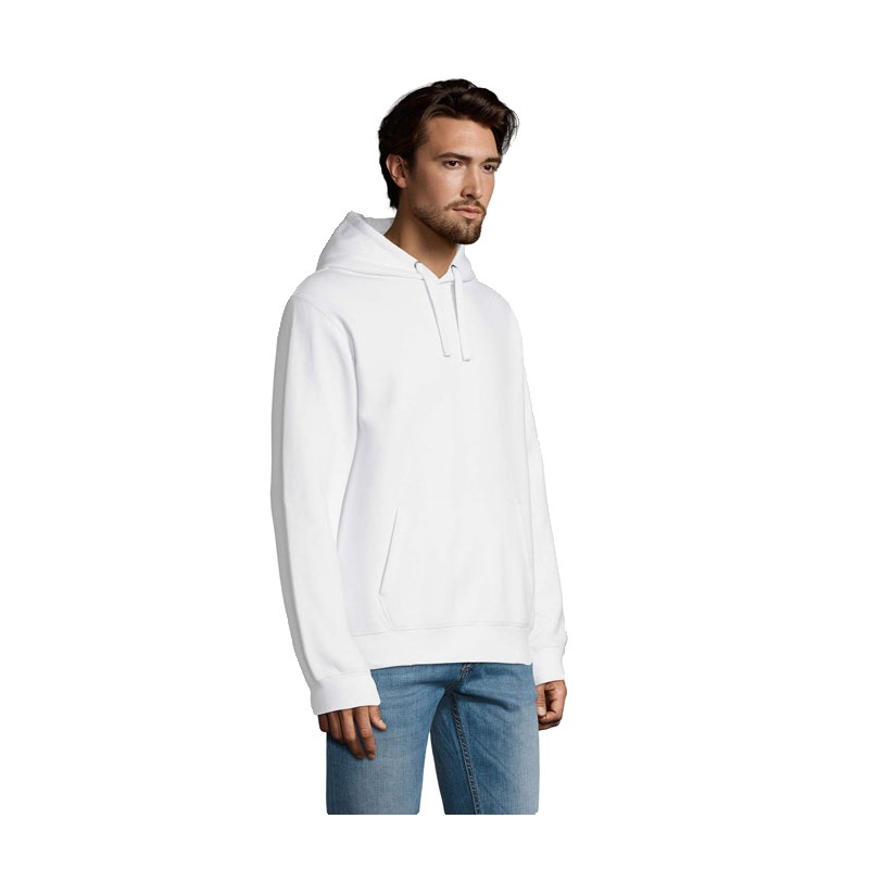 SOL'S SPENCER, SWEAT-SHIRT HOMME À CAPUCHE, 80% coton Ringspun - 20% polyester, Intérieur gratté, Extérieur 100% coton Molleton 280 technologie LSF (low shrinkage fabric), Poche kangourou, Coupé cousu, Capuche doublée avec cordon de serrage, Poignets et bas en bord côte 2x2, Demi-lune à l'intérieur du col, Bande de propreté intérieur col, (1) Anthracite chiné : 60 % coton / 40 % polyester, (2) Blanc chiné : 79 % coton / 20 % polyester / 1 % viscose, (3) Gris chiné : 75 % coton / 20 % polyester / 5 % viscose, (4) Denim chiné : 60 % coton / 40 % polyester, (5) Oxblood chiné : 60 % coton / 40 % polyester.Pour la correspondance des tailles, veuillez vous référer au size chart dans la documentation produit.