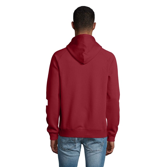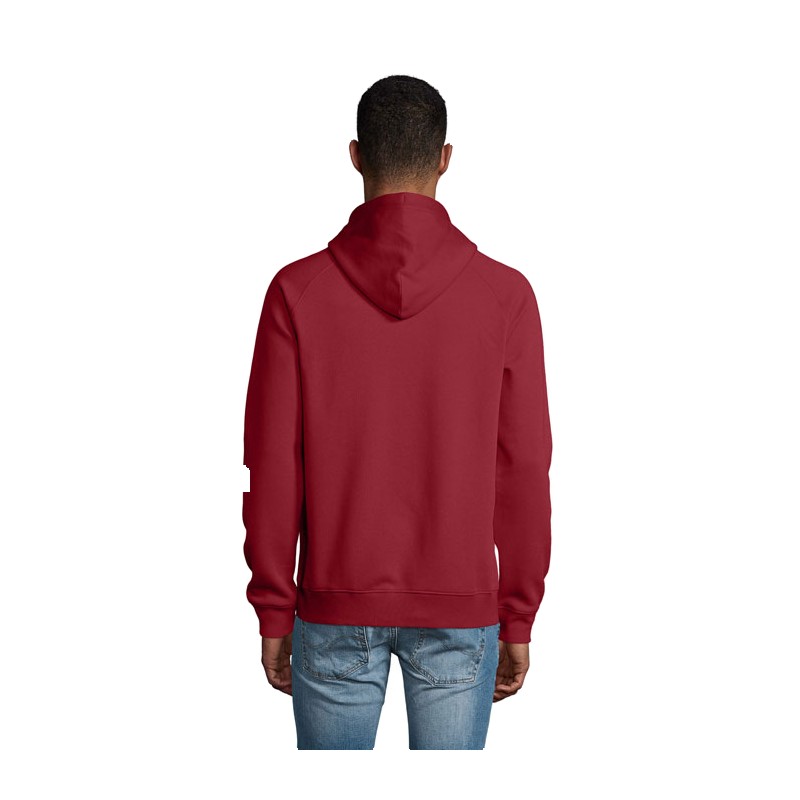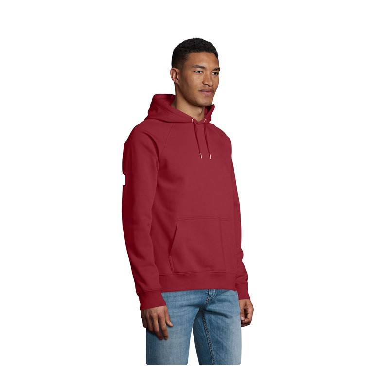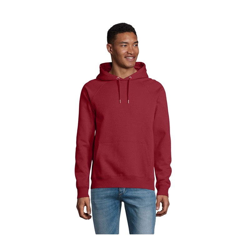 SOL'S STELLAR SWEAT-SHIRT UNISEXE À CAPUCHE. 80% coton issu de l'agriculture biologique - 20% polyester recyclé. 3 fils.Intérieur gratté.Extérieur 100% coton issu de l'agriculture biologique Molleton gratté 280. Coupé cousu. Manches raglan.Poignets et bas en bord côte 2x2.Demi-lune à l'intérieur du col.Bande de propreté intérieur col.Cordon de resserrage avec oeillets et embouts en métal. Capuche doublée en jersey. (1) Gris chiné : 75 % Coton bio / 20 % polyester recyclé / 5 % viscose. (2) Anthracite chiné : 60 % Coton bio / 40 % polyester recyclé.
