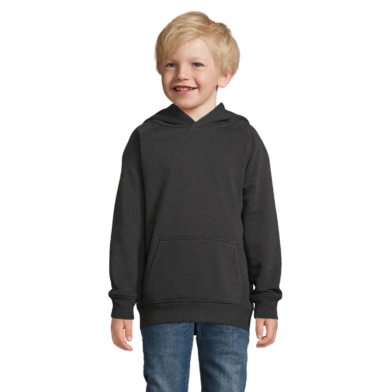 SOL'S STELLAR KIDS, SWEAT-SHIRT ENFANT À CAPUCHE, 80% coton issu de l'agriculture biologique - 20% polyester recyclé, Intérieur gratté, 3 fils, Extérieur 100% coton issu de l'agriculture biologique Molleton gratté 280, Coupé cousu, Manches raglan, Poignets et bas en bord côte 2x2, Demi-lune à l'intérieur du col, Bande de propreté intérieur col, Capuche doublée en jersey, (1) Gris chiné : 75 % Coton bio / 20 % polyester recyclé / 5 % viscose.Pour la correspondance des tailles, veuillez vous référer au size chart dans la documentation produit.