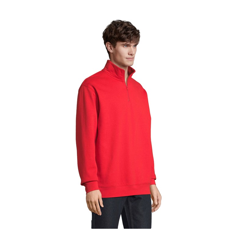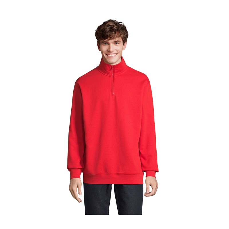 SOL'S CONRAD, Sweat unisexe col camionneur 80% coton - 20% polyester recyclé manches montées,coupé cousu,bord côte 1x1 aux poignets et bas du corps,col camionneur avec 1/4 zip,zip plastique injecté ton sur ton avec tir-zip en métal ton sur ton,demi-lune et bande de propreté en jersey dans l'encolure (1) gris chiné : 73 % coton / 20 % polyester recyclé / 7 % viscose. pour la correspondance des tailles, veuillez vous référer au size chart dans la documentation produit.