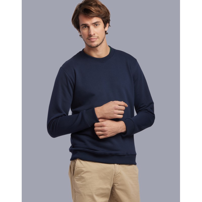 Sweatshirt shirt unisexe Made in France 80% coton biologique certifié OCS 20% polyester recyclé. Matière Terry 350g/m² lavée, non grattée pour éviter le boulochage + traitement silicone pour améliorer la longévité du vêtement. Col rond standard en bord-côte 1x1 100% coton biologique. Col en demi lune dans la matière extérieure. Bande de propreté au col. Double piqure en bas de corps et de manches. Toucher soyeux
