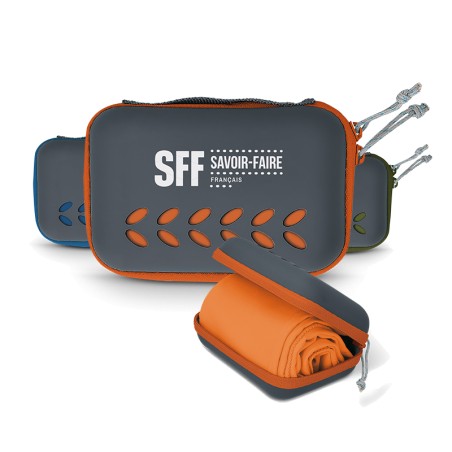 SERVIETTE MICROFIBRE DE SPORT AVEC BOITE DE RANGEMENT