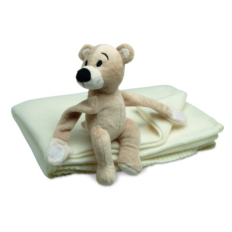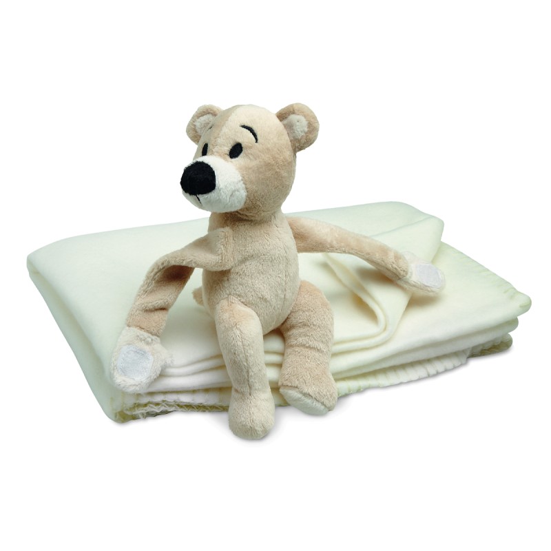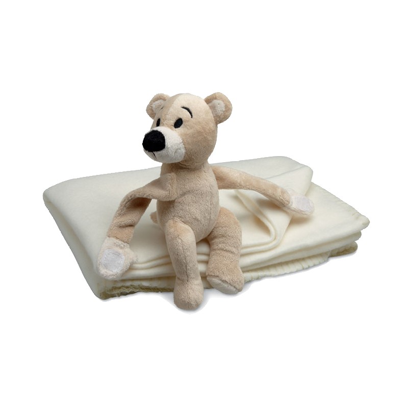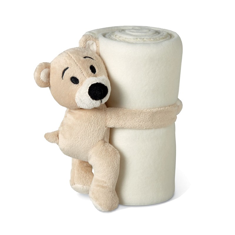 Couverture polaire pour enfants avec nounours tenant la couverture avec des mains en velcro.