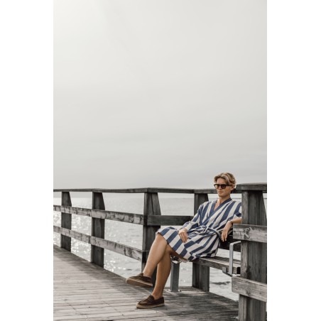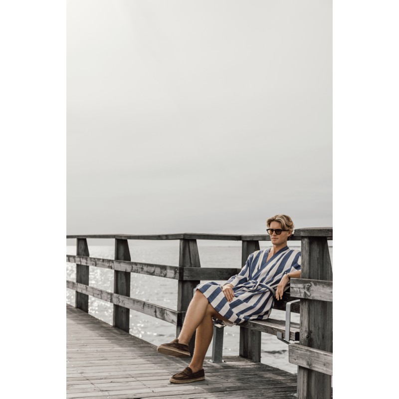 Apportez ce peignoir de hammam doux et confortable à la plage ou profitez-en simplement à la maison. Fabriqué dans un mélange léger et aéré de 200 g/m², il allie le confort du coton aux avantages du séchage rapide du polyester. Conçu dans un style classique avec un motif rayé bicolore, il présente un col soigné, des poches sur le devant, des manches 3/4 et une ceinture à la taille pour un ajustement parfait. Certifié par GRS (Global Recycled Standard), la certification GRS garantit que l'ensemble de la chaîne d'approvisionnement des matériaux recyclés est certifiée. Le contenu recyclé total est basé sur le poids total du produit. Ce produit contient 69 % de coton recyclé certifié GRS et 29 % de polyester recyclé certifié GRS.