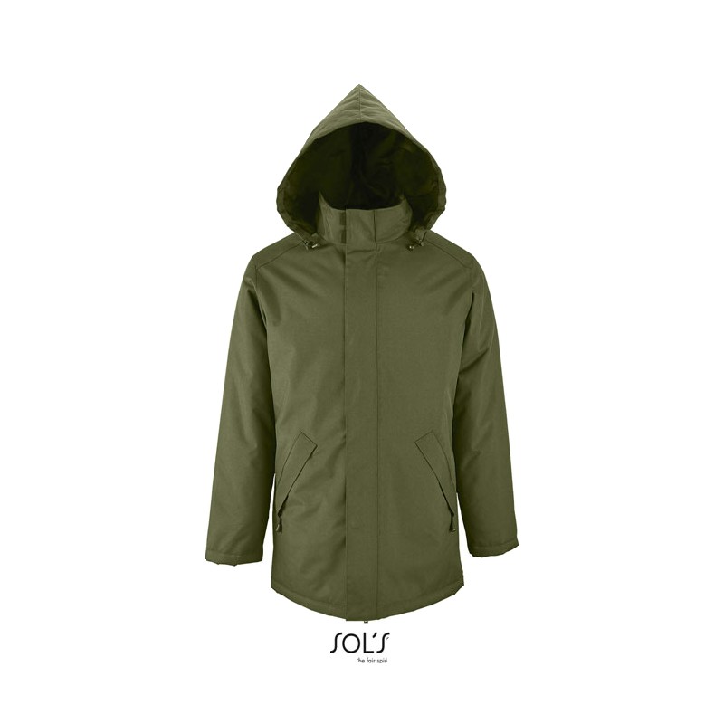 SOL'S ROBYNsol's robyn, parka unisexe à doublure matelassée, 100% polyester enduction pvc, doublure et matelassage : 100% polyester oxford 300d, ouverture zippée double curseur avec patte auto-agrippante et pressions invisibles, capuche sous col, col intérieur doublé polaire, 2 poches extérieures zippées avec rabat, 1 poche intérieure, patte de resserrage poignets. Pour la correspondance des tailles, veuillez vous référer au size chart dans la documentation produit.