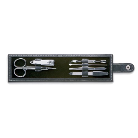 Set manucure en pochette PU. 6 pièces en Acier inox.