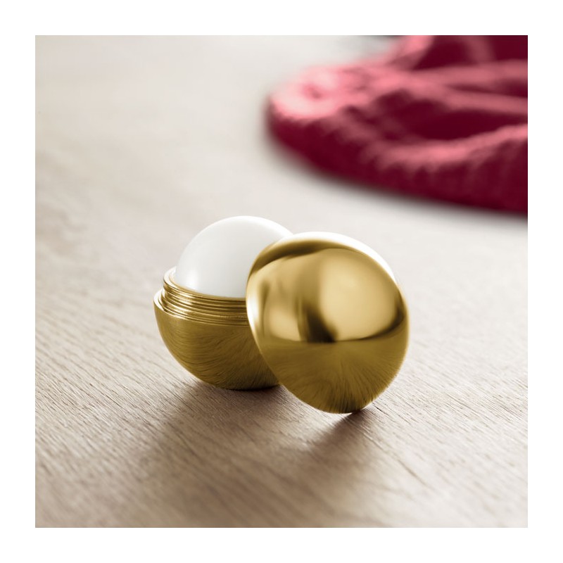 Baume à lèvres naturel dans un support rond en finition métallique. Testé dermatologiquement. SPF10.Saveur: Vanille.