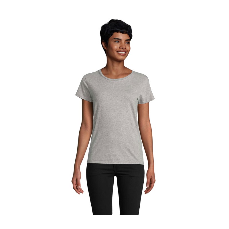 SOL'S PIONEER WOMEN, tee-shirt femme jersey col rond ajusté, 100% coton issu de l'agriculture biologique, apprêt naturel pour une qualité plus douce et lisse jersey 175, col avec bord côte 100% coton, col rond, bande de propreté au col, coupe ajustée, tubulaire, (1) blanc chiné : 98 % coton bio / 2 % viscose, (2) gris chiné : 85 % coton bio / 15 % viscose.pour la correspondance des tailles, veuillez vous référer au size chart dans la documentation produit.