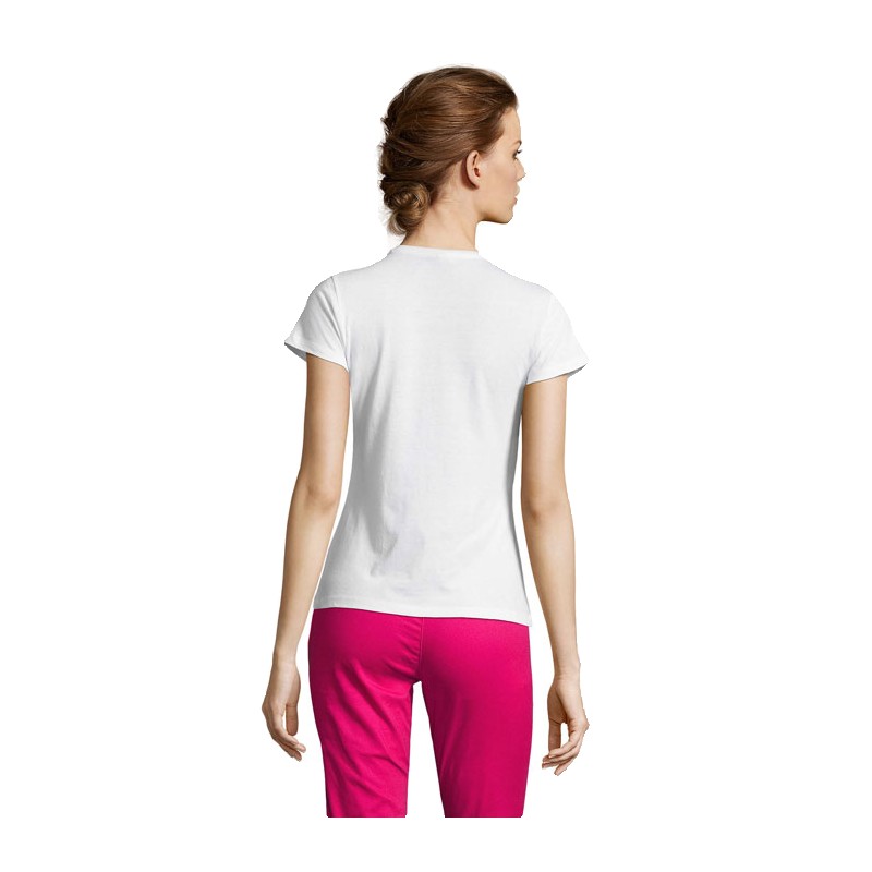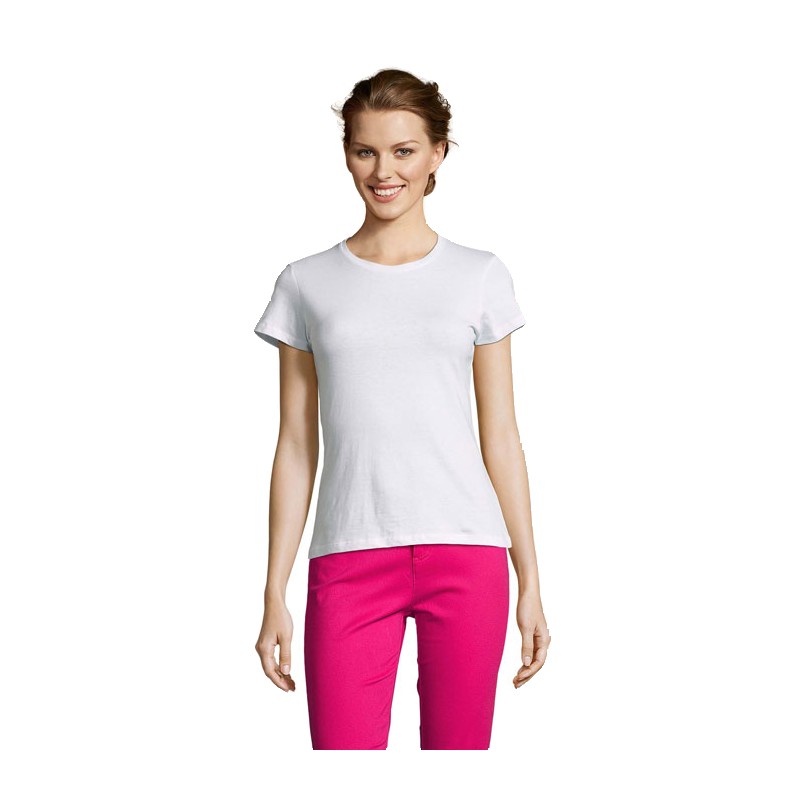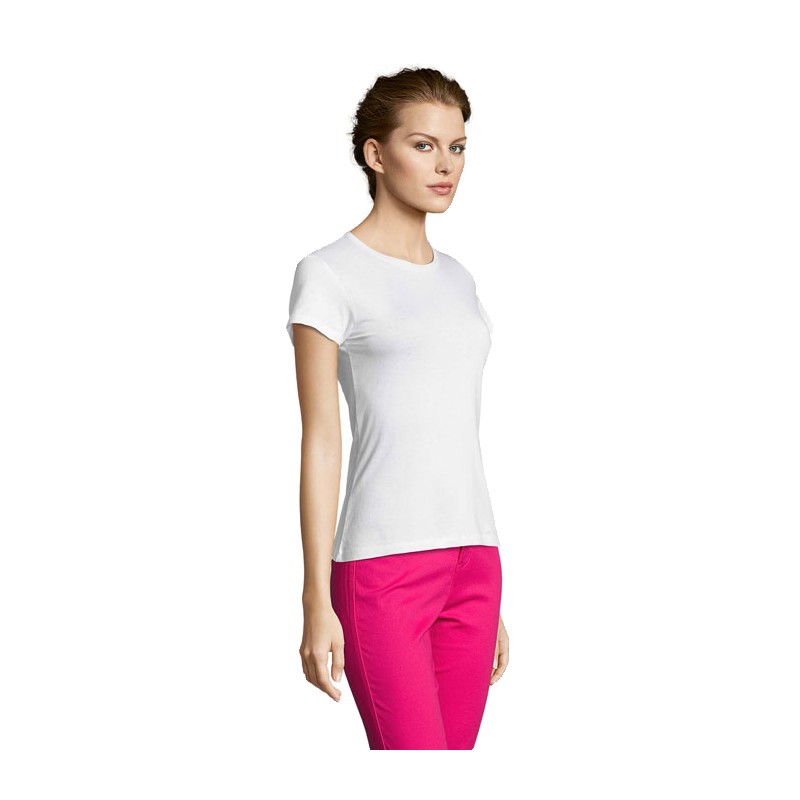 SOL'S MISS, TEE-SHIRT FEMME, 100% coton semi-peigné Ringspun Jersey 150, Bande de propreté au col, Encolure jersey, Manches courtes, Coupe cintrée, Coupé cousu, (1) Gris chiné : 85 % coton / 15 % viscose. Pour la correspondance des tailles, veuillez vous référer au size chart dans la documentation produit.