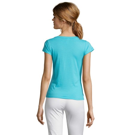 SOL'S MOON, tee-shirt femme col "v", 100% coton semi-peigné ringspun jersey 150, bande de propreté au col, manches courtes, coupe cintrée, col "v" en bord côte élasthanne, coupé cousu, (1) gris chiné : 85 % coton / 15 % viscose. Pour la correspondance des tailles, veuillez vous référer au size chart dans la documentation produit.