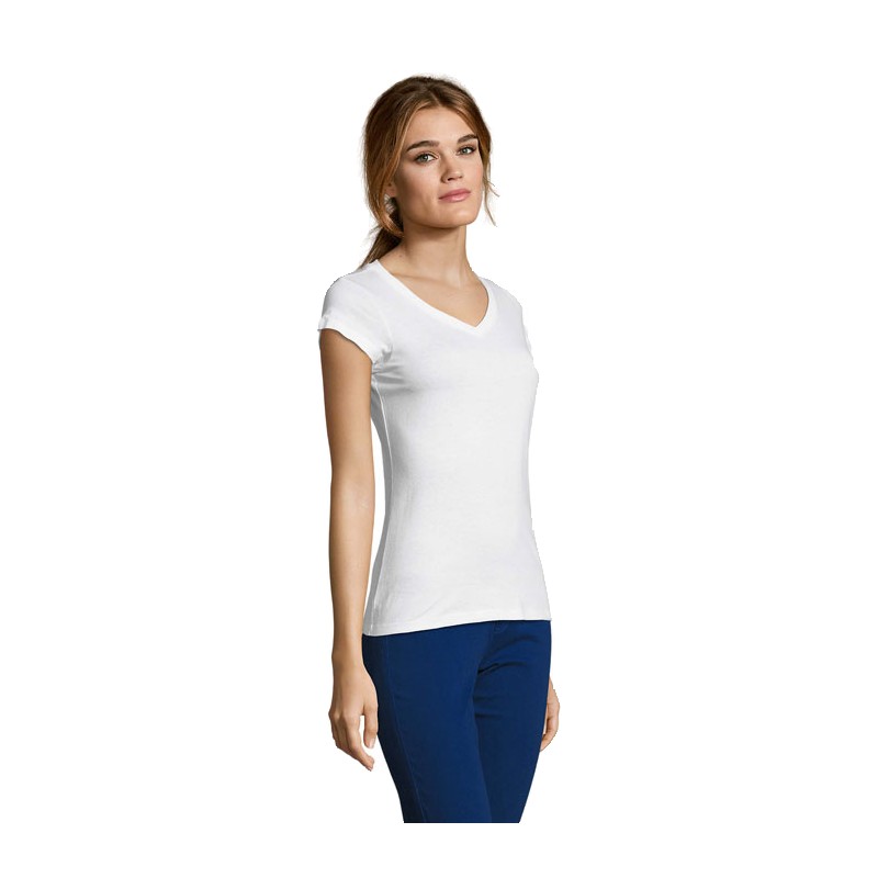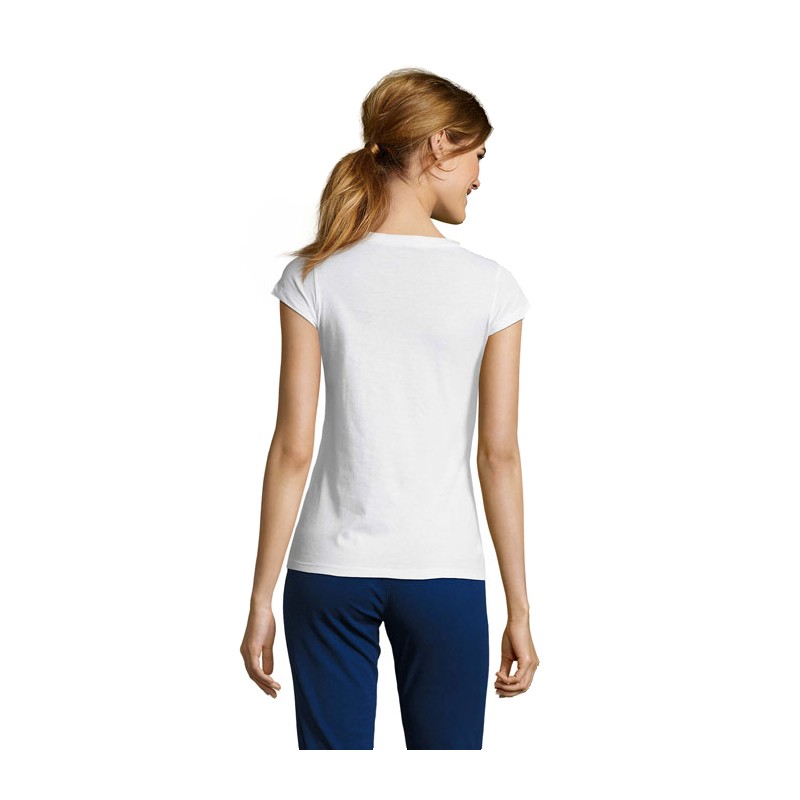 SOL'S MOON, tee-shirt femme col "v", 100% coton semi-peigné ringspun jersey 150, bande de propreté au col, manches courtes, coupe cintrée, col "v" en bord côte élasthanne, coupé cousu, (1) gris chiné : 85 % coton / 15 % viscose. Pour la correspondance des tailles, veuillez vous référer au size chart dans la documentation produit.